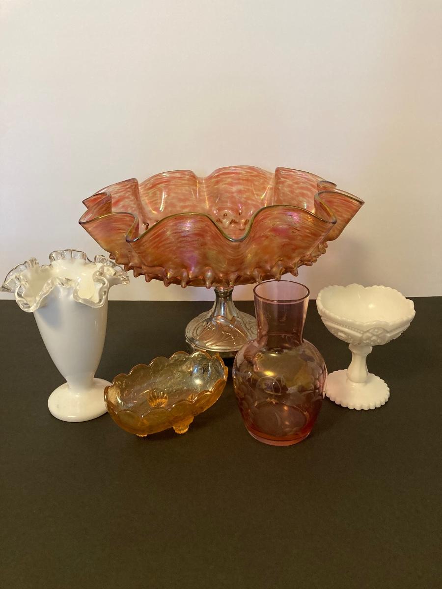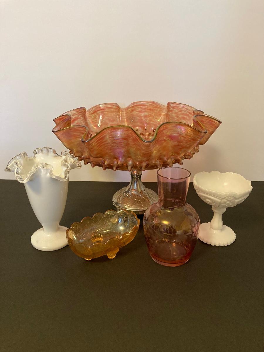 LOT 224F: Vintage Art Glass Collection - Compote Dish, Milk Glass and More