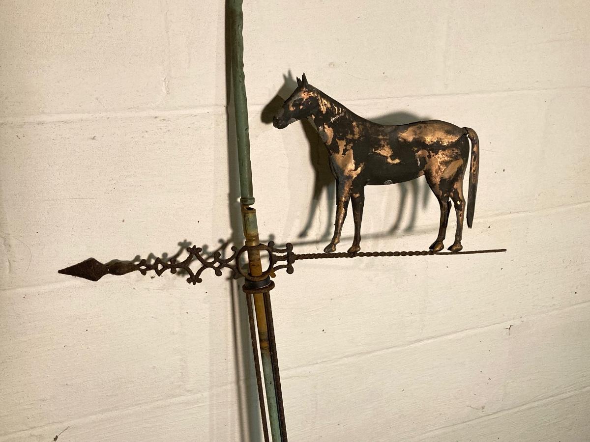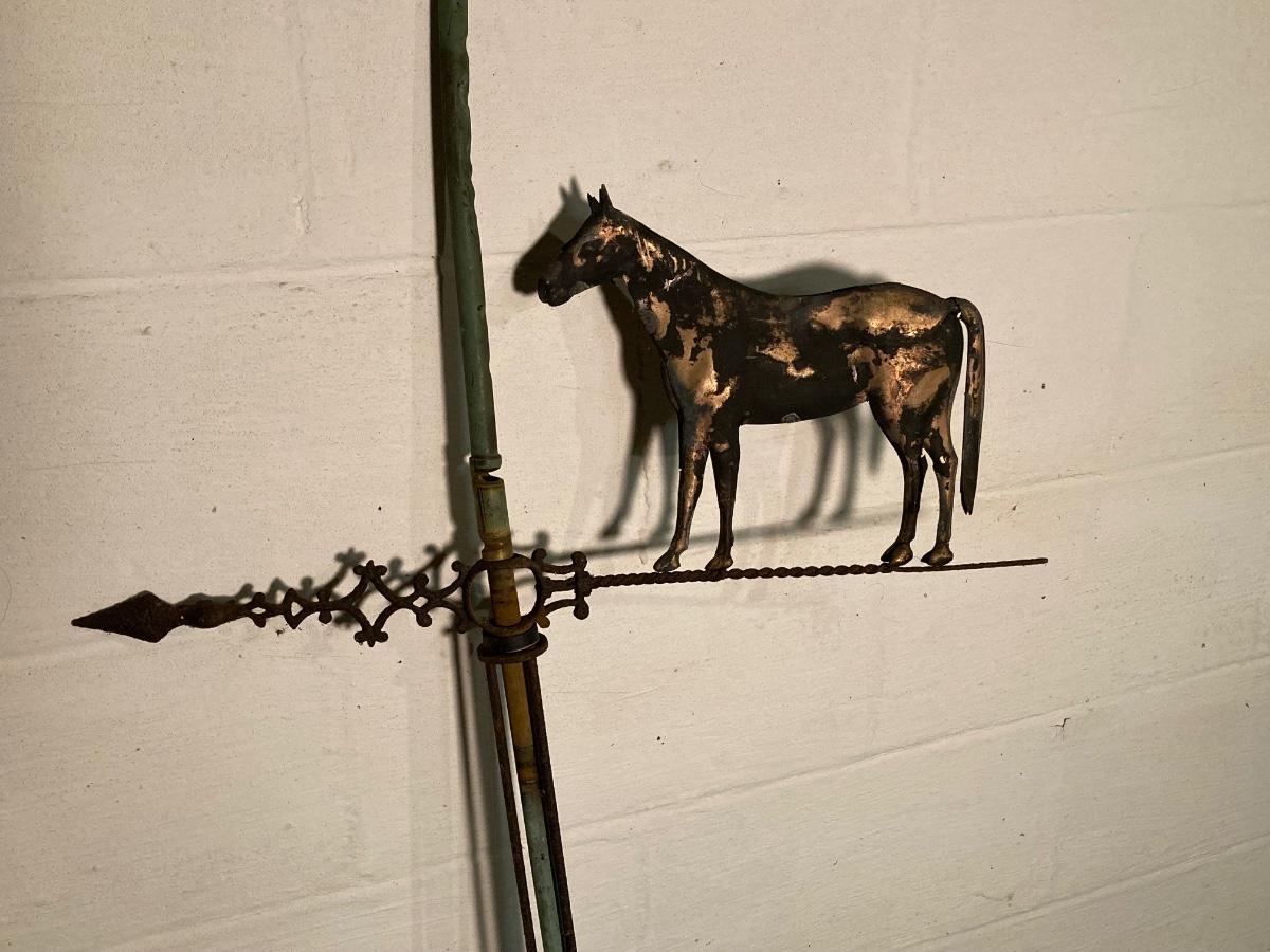 LOT 238DB: Vintage Horse Wind Vane with Metal Plant Stand
