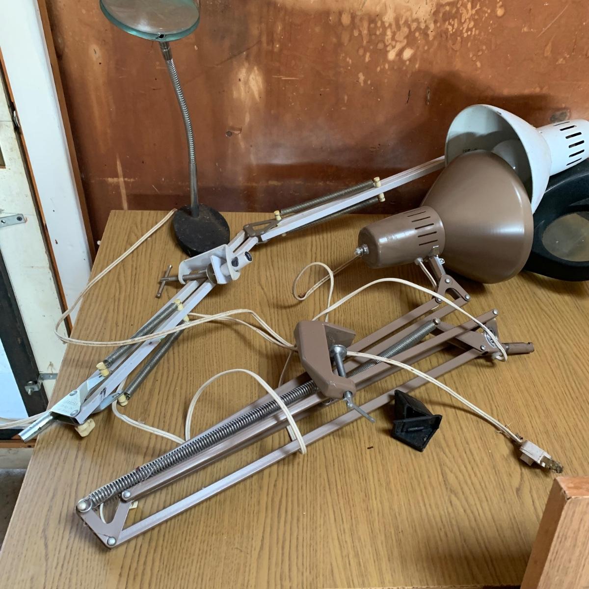 LOT 247G: Tables, Clamp on Lights & Stool