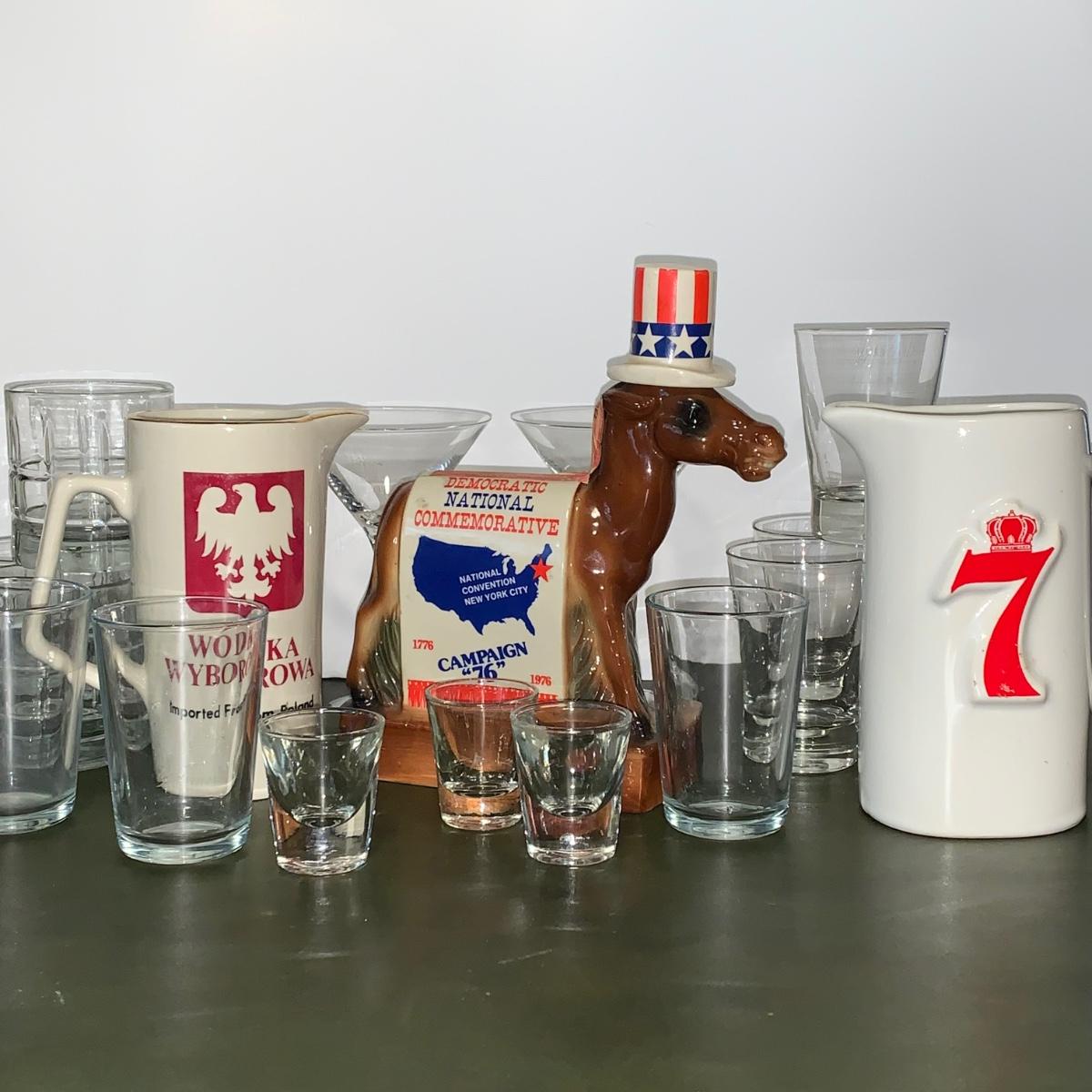 LOT 255K: Ezra Brooks Political Decanter, Seagram's 7 Pitcher, Wodka Wyborowa Pitchers & More