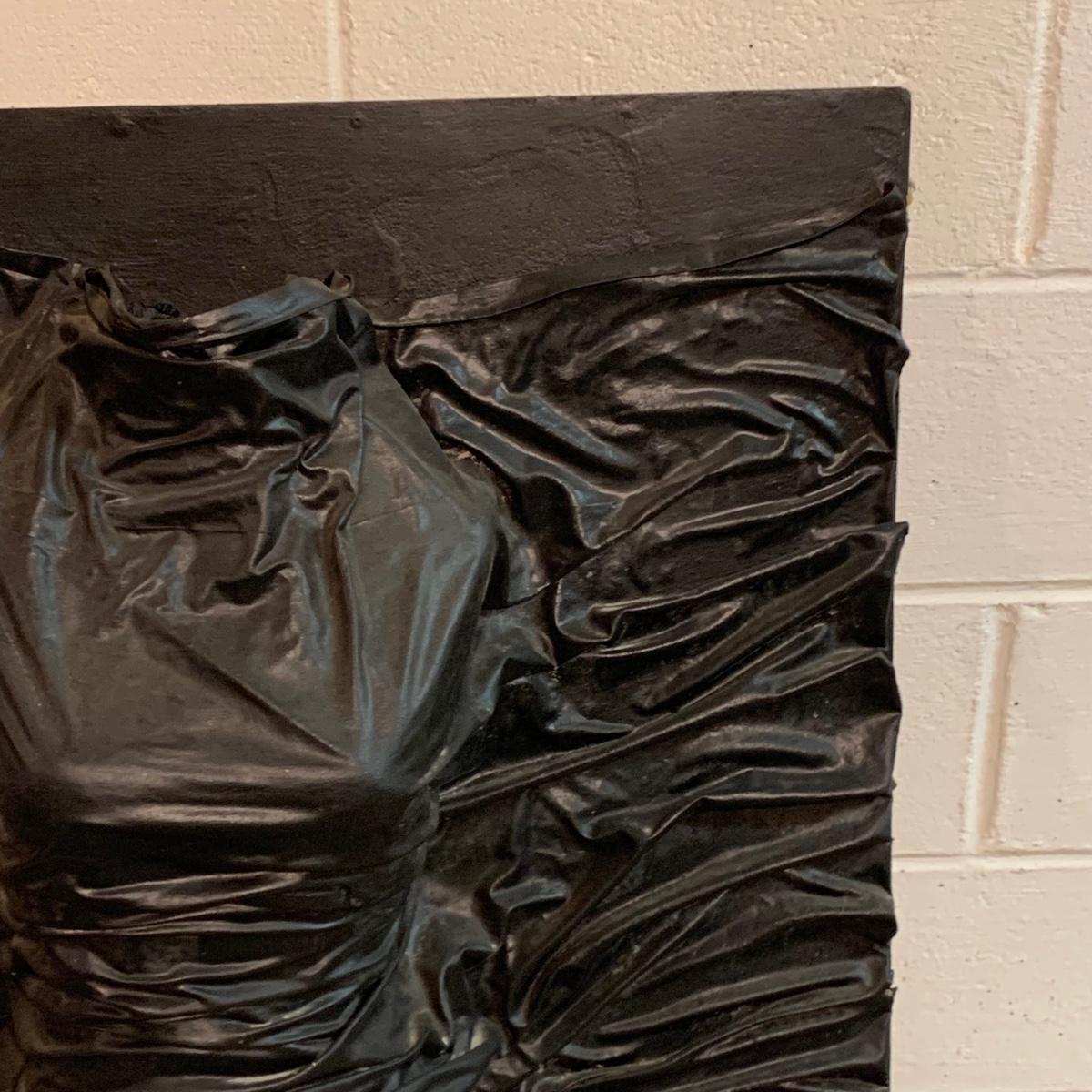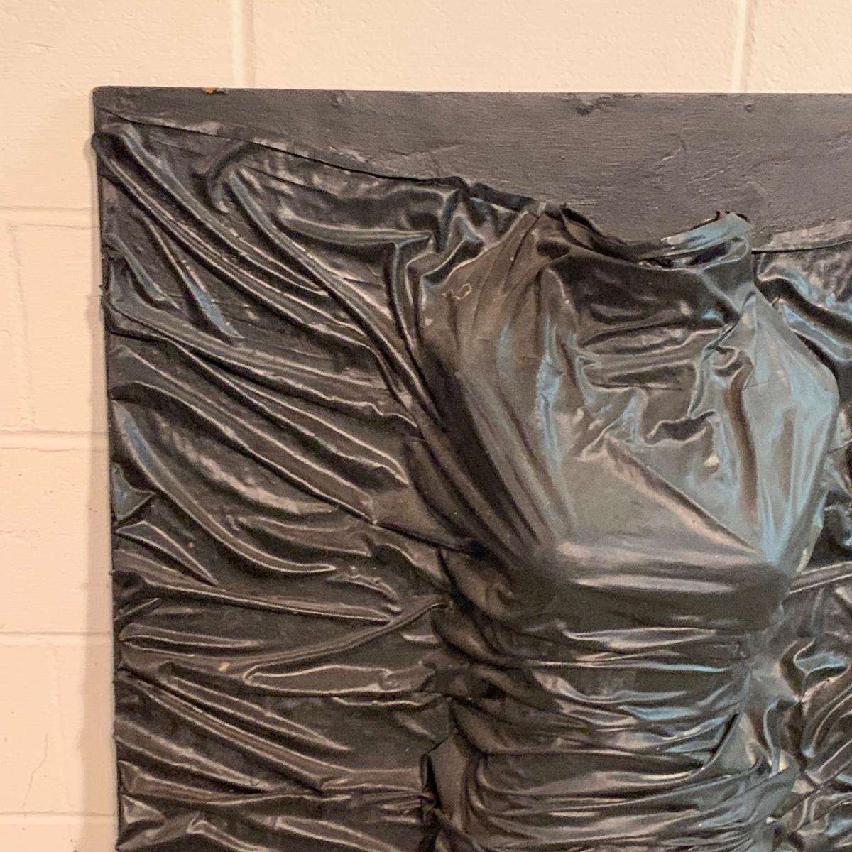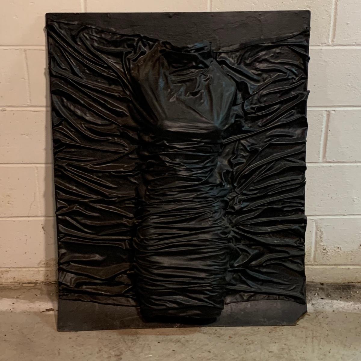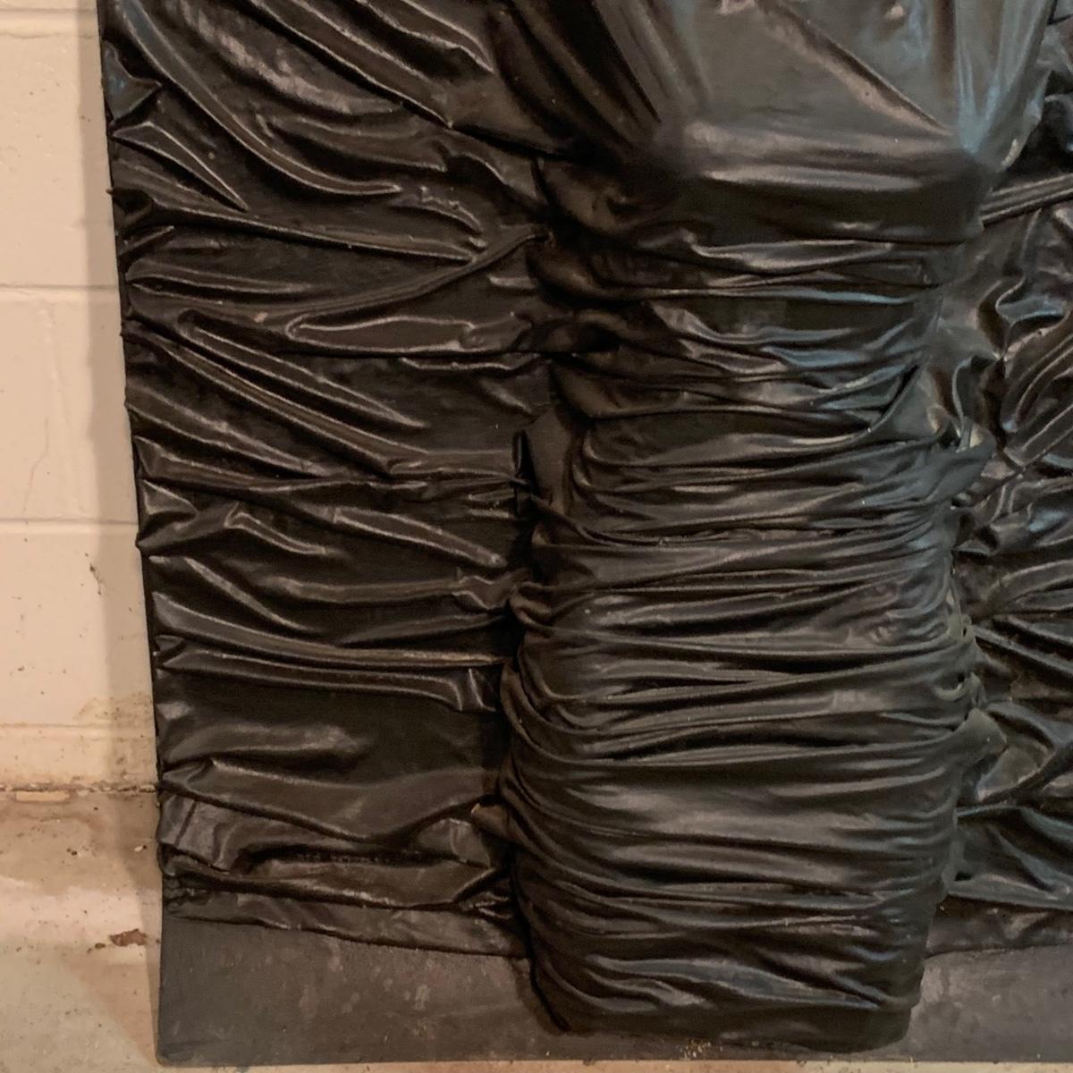 The exact composition of the sculptures is unknown. Some appear to be actual articles of clothing while others may be cloth which has been hardened then painted. They are life-size, lighter in weight.