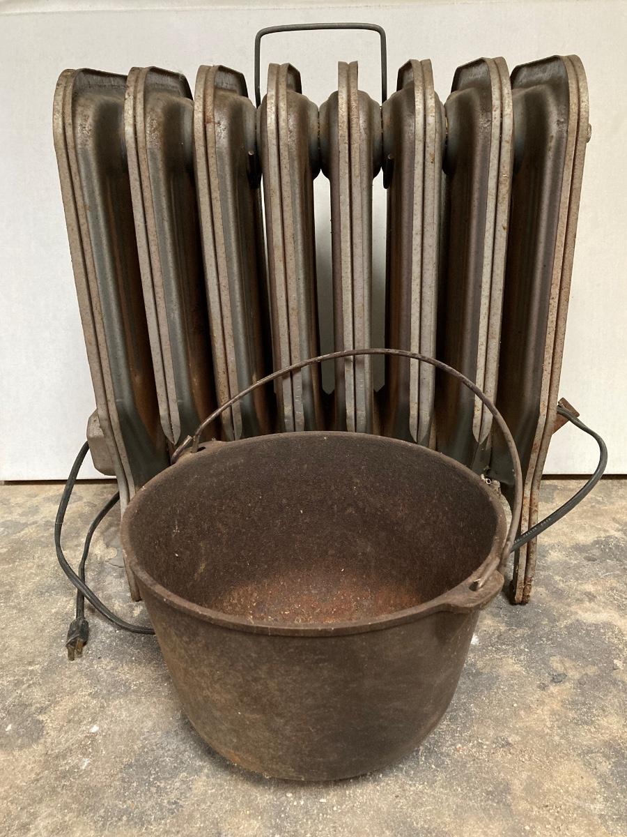 LOT 279G: Vintage Electric Steam Portable Heater and Cast Iron Bucket
