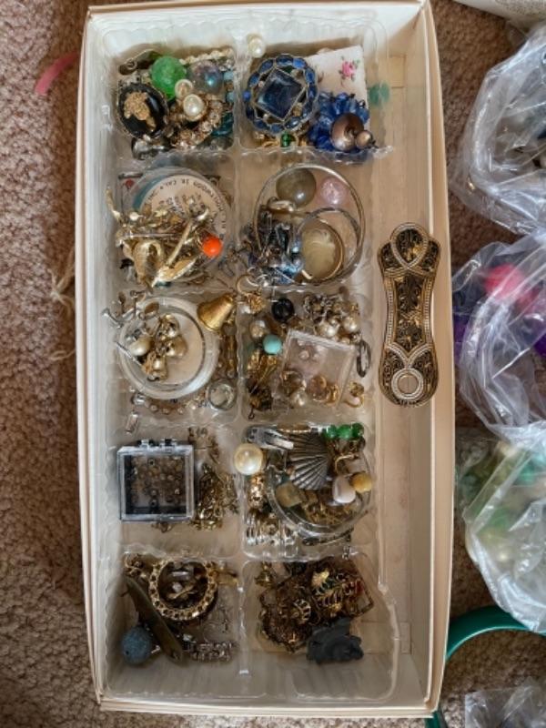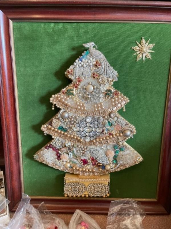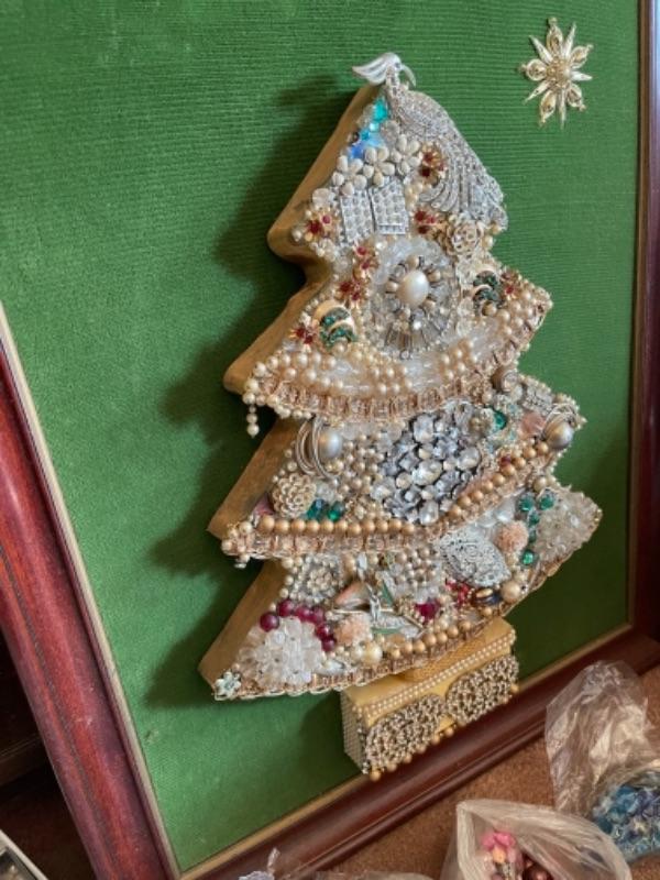 Lot 97B1. Miscellaneous jewelry pieces for creating Christmas tree art, framed jewelry tree--$40