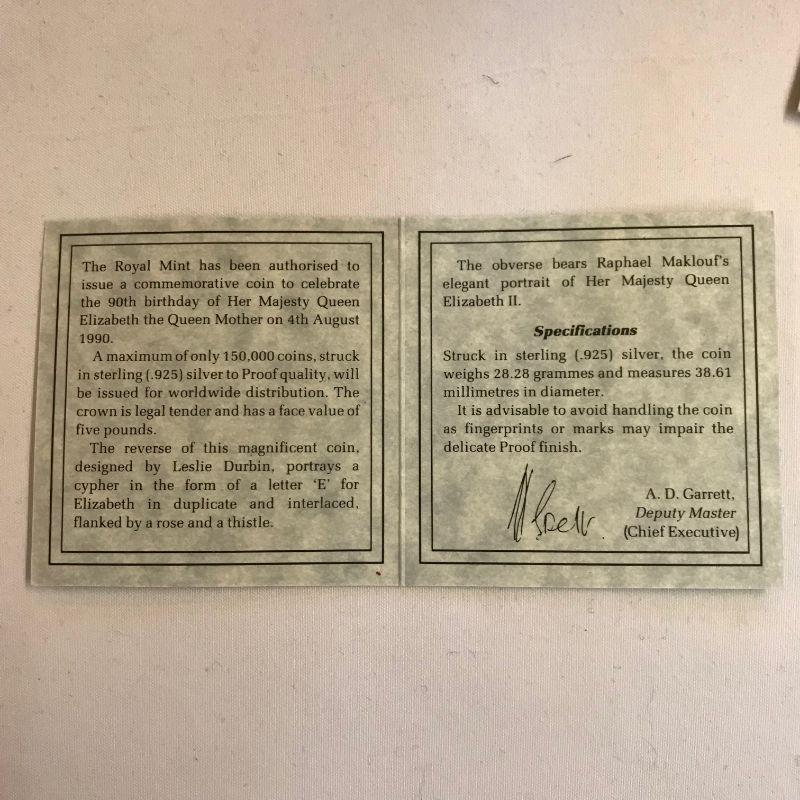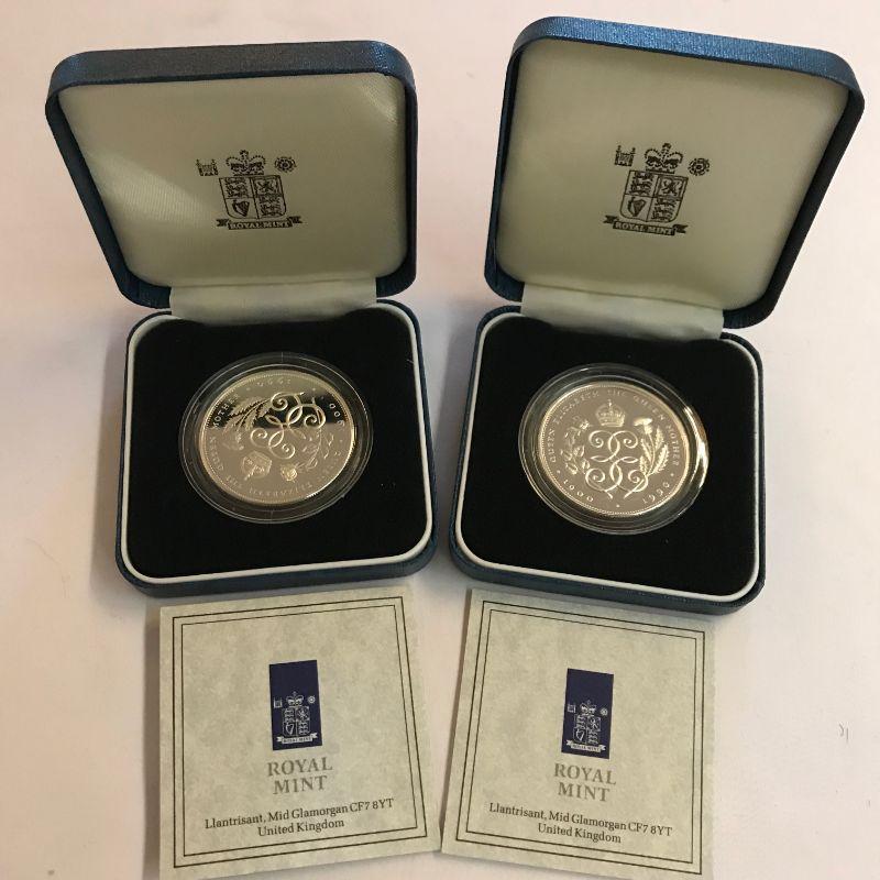 Two 1990 Birthday Silver Proof Crowns. Sterling Silver .925