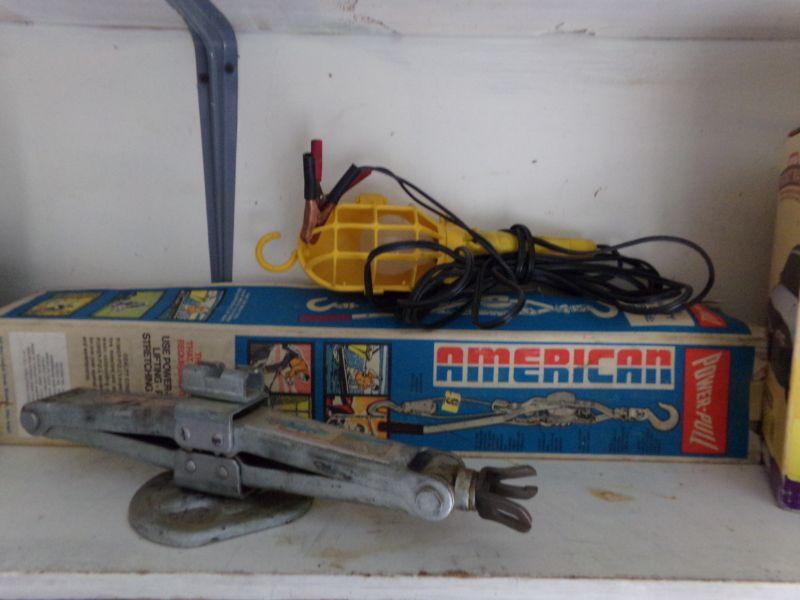 CAR JACK (NO POLE), COME ALONG AND TROUBLE LIGHT RAN OFF CAR BATTERY