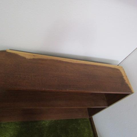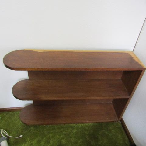 LOT 98  SMOKEY GLASS TOP TABLE & WOODEN SHELF