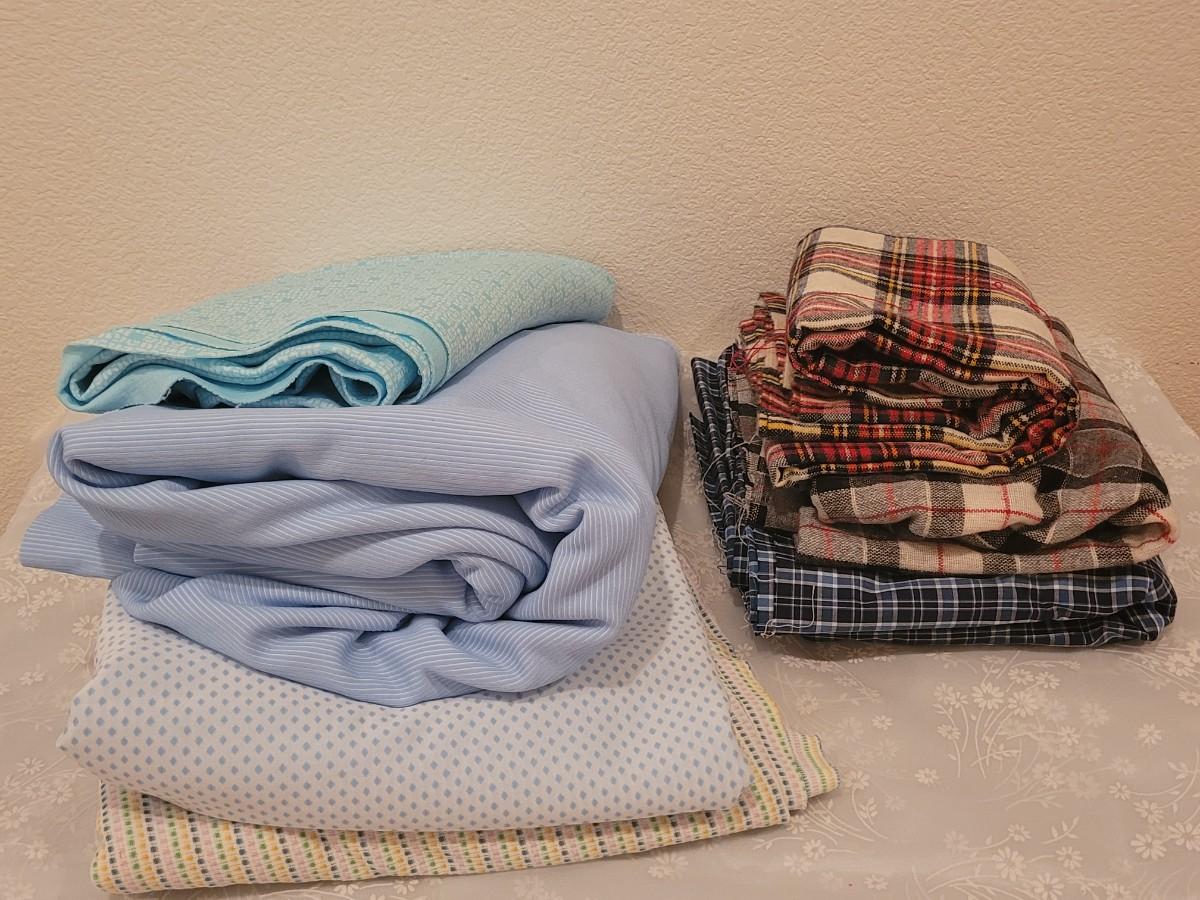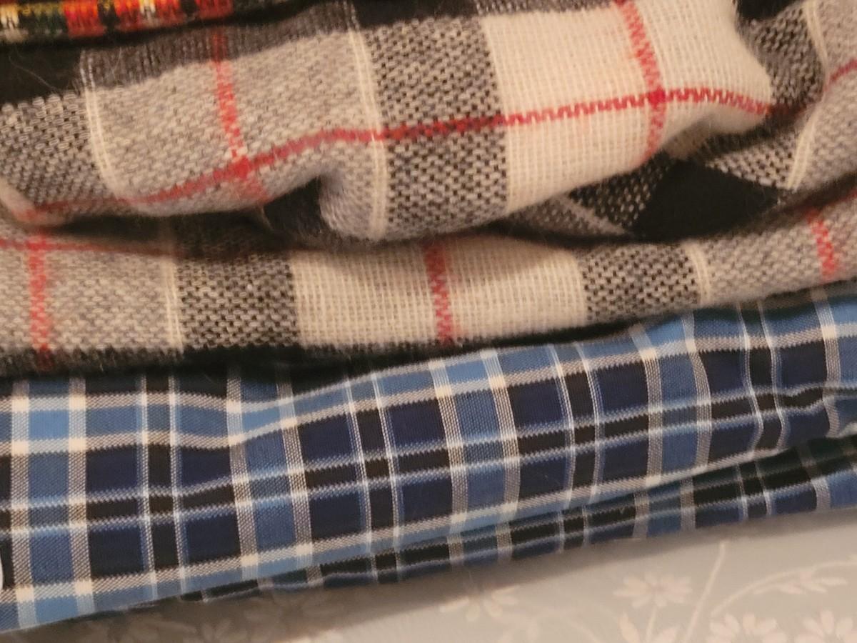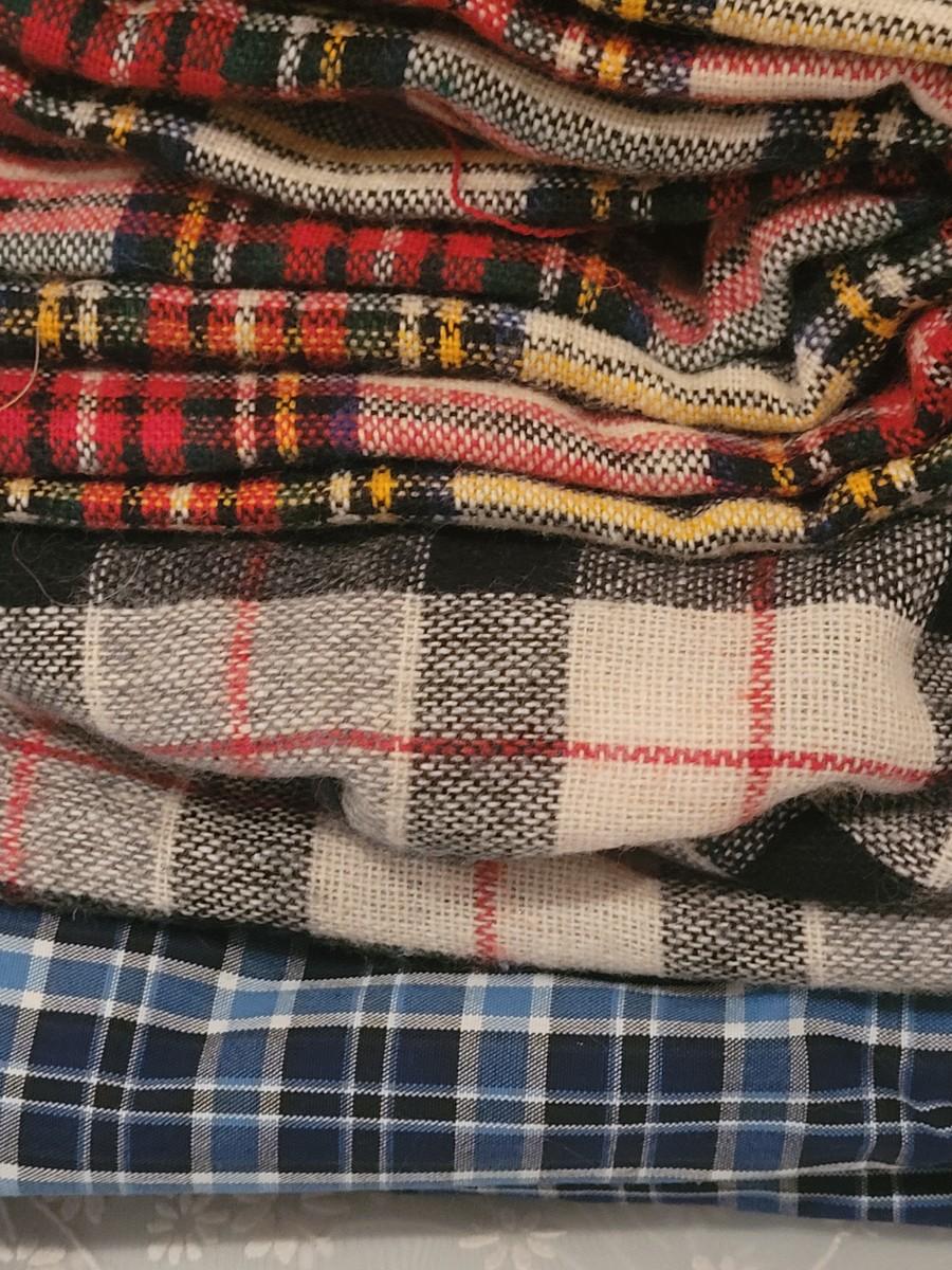 Lot 98: Mixed Polyester and Flannel Fabric (Polyester and Cotton Plaid -more than 5 yards, Flannels around 2 yards))
