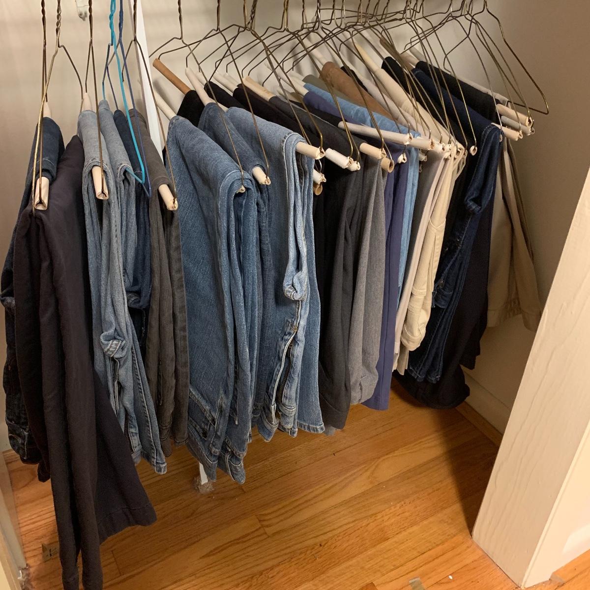 This lot includes a nice selection of various ladies jeans and slacks, for casual to formal wear. There are about ten pairs of jeans, mostly straight leg LL Beans. There are a few pairs of khakis and a few pairs of corduroys, as well as some nice polyester slacks. These are mostly size 10/12 petites. They all appear to be in excellent condition. Hangers included. Local pickup only.