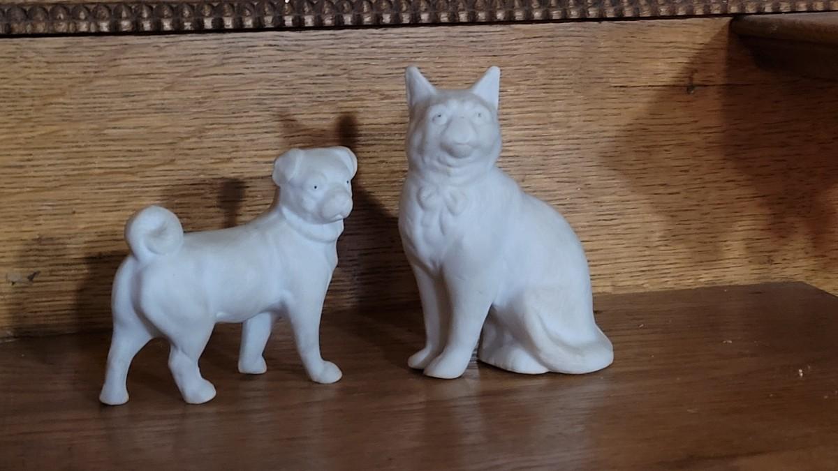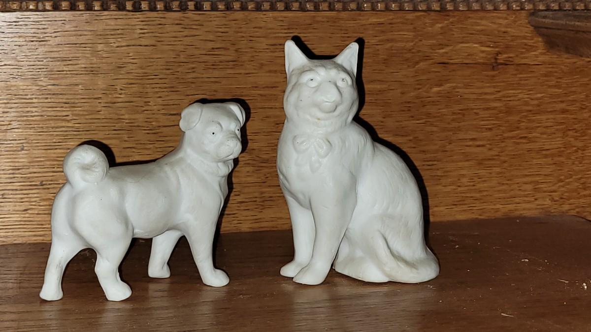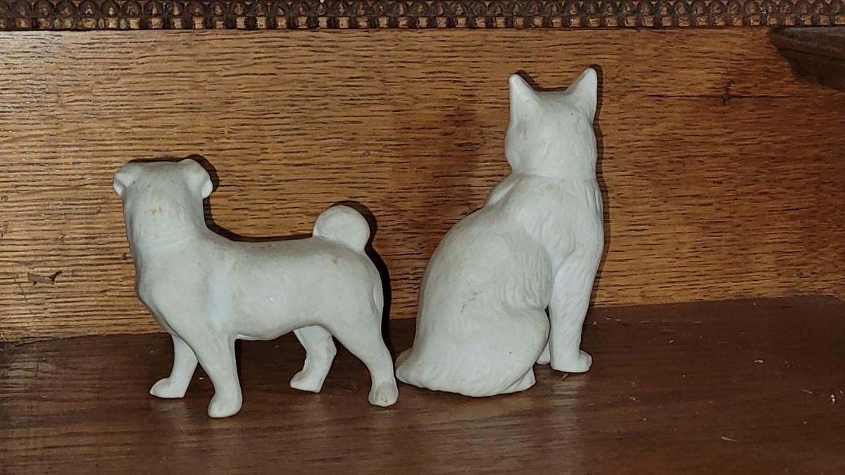 Lot 98: (2) Antique Porcelain Kitty & Dog