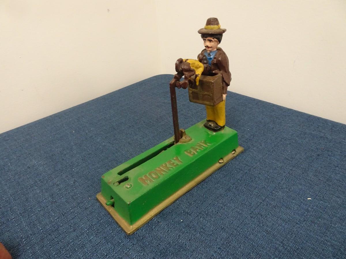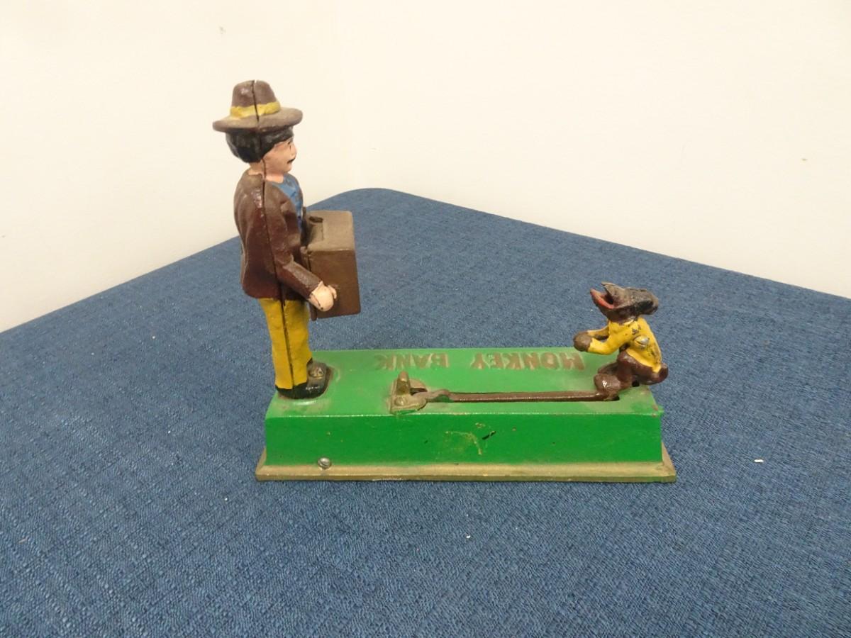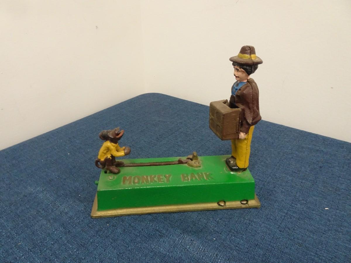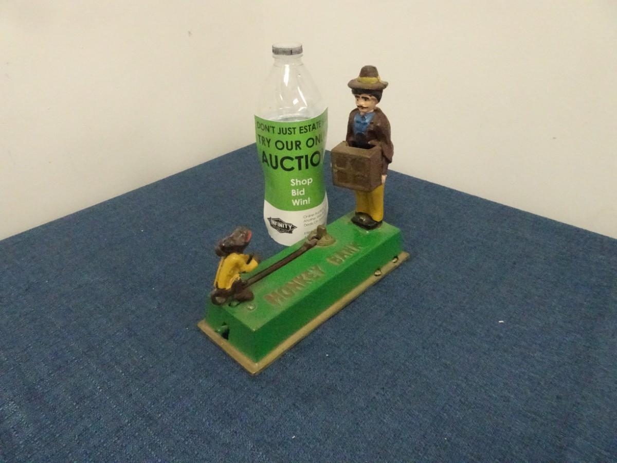 LOT 98. VINTAGE DIE CAST METAL MONKEY BANK