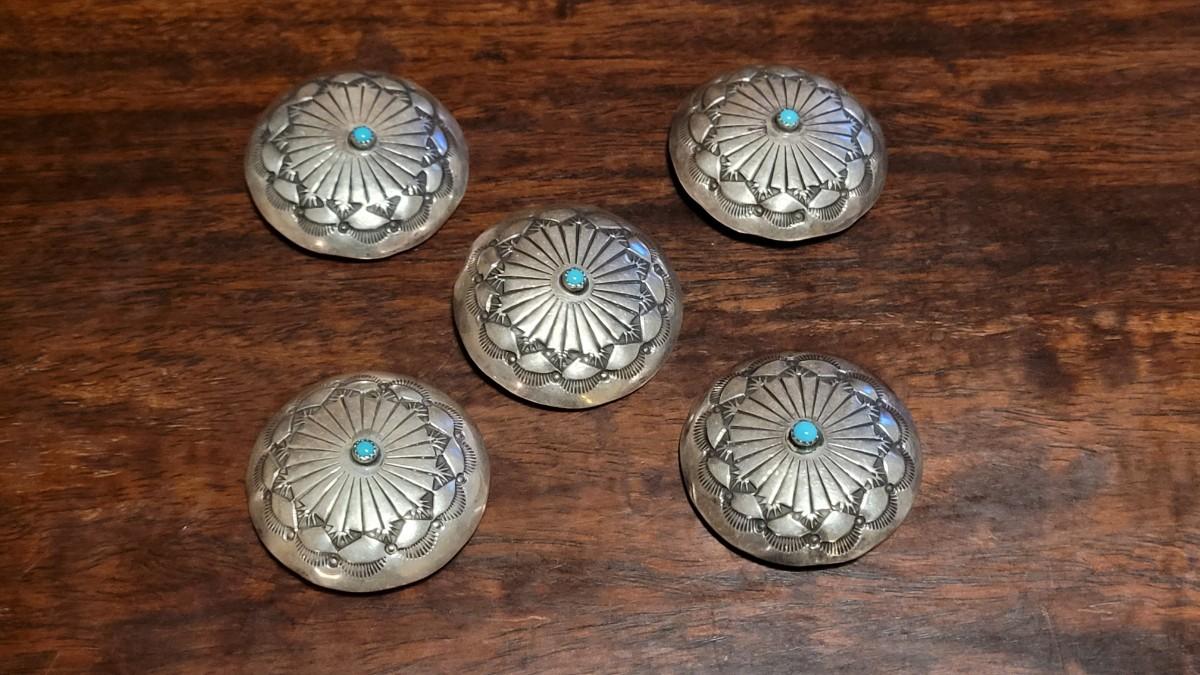 Lot 98: Vintage Native American 1.5" Turquois and Sterling Silver Button Covers