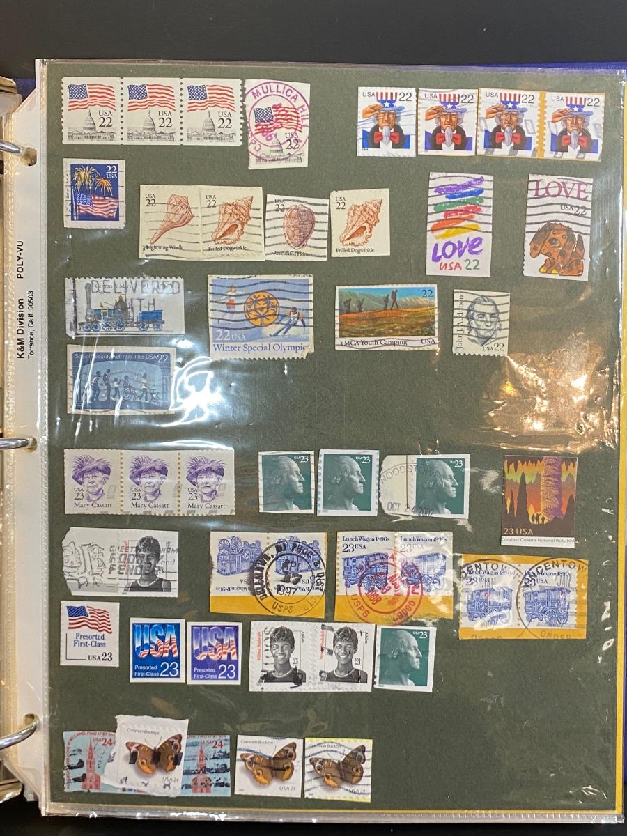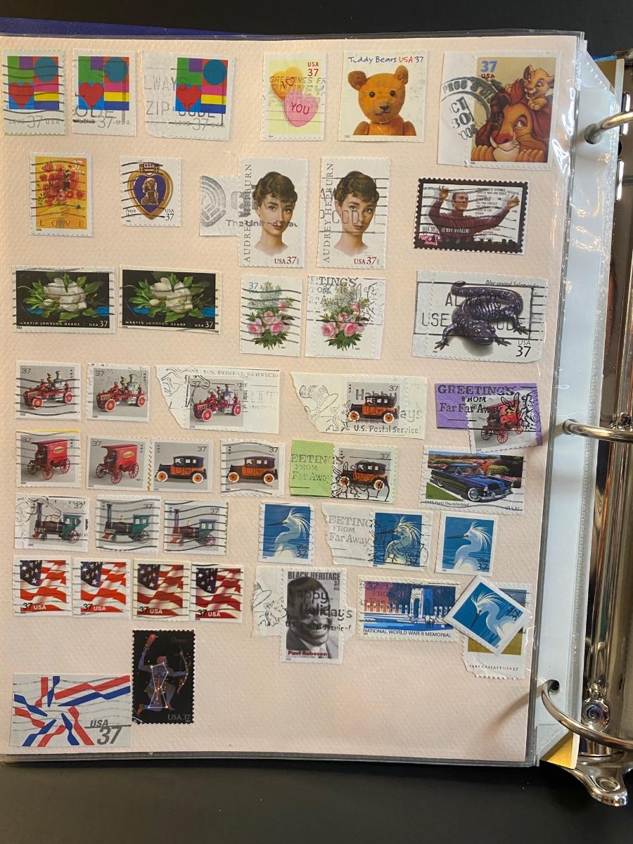 Three ring binder full of collectible stamps. Please see all pictures as they are the best representation of the items. The pictures show condition, measurements if taken, and what is included in the lot. Due to the large amount that we photograph and the time frame, we are not always able to take measurements. All items unless noted, are pre-owned and have been used. If you purchased furniture, you must bring help. We do not allow one person to carry large furniture out on their own. Bring help, tools and a truck for the safety of our client’s homes, and your personal safety. Company policy. Thank you.