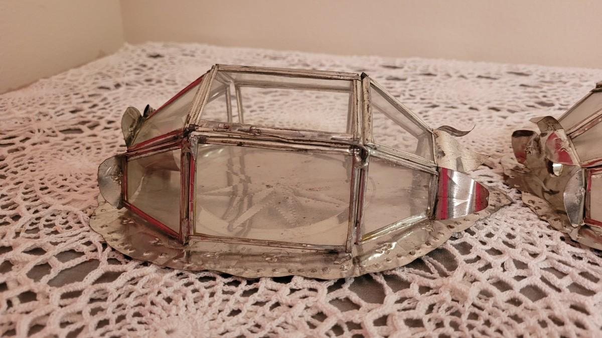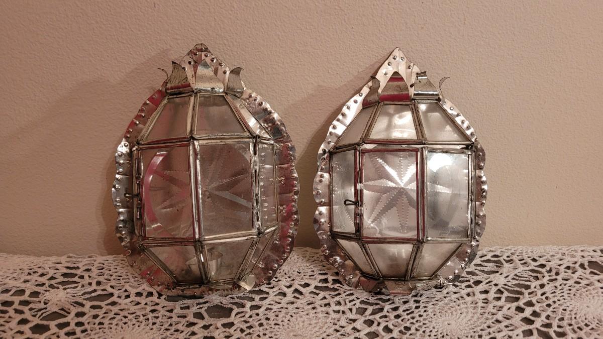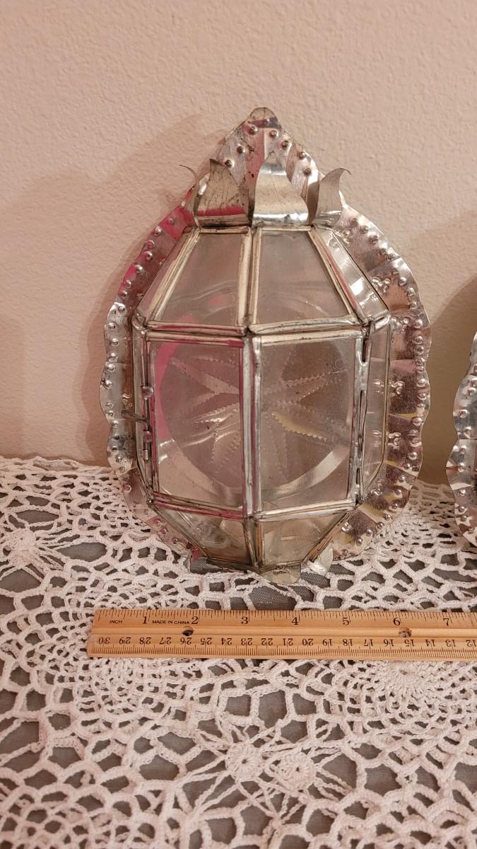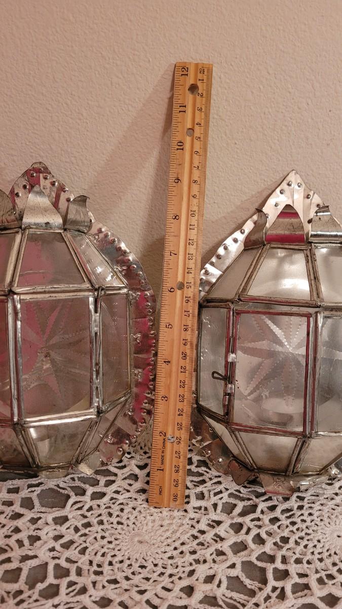 Lot 98: Pair of Mexican Folk Art Tin Candleholders
