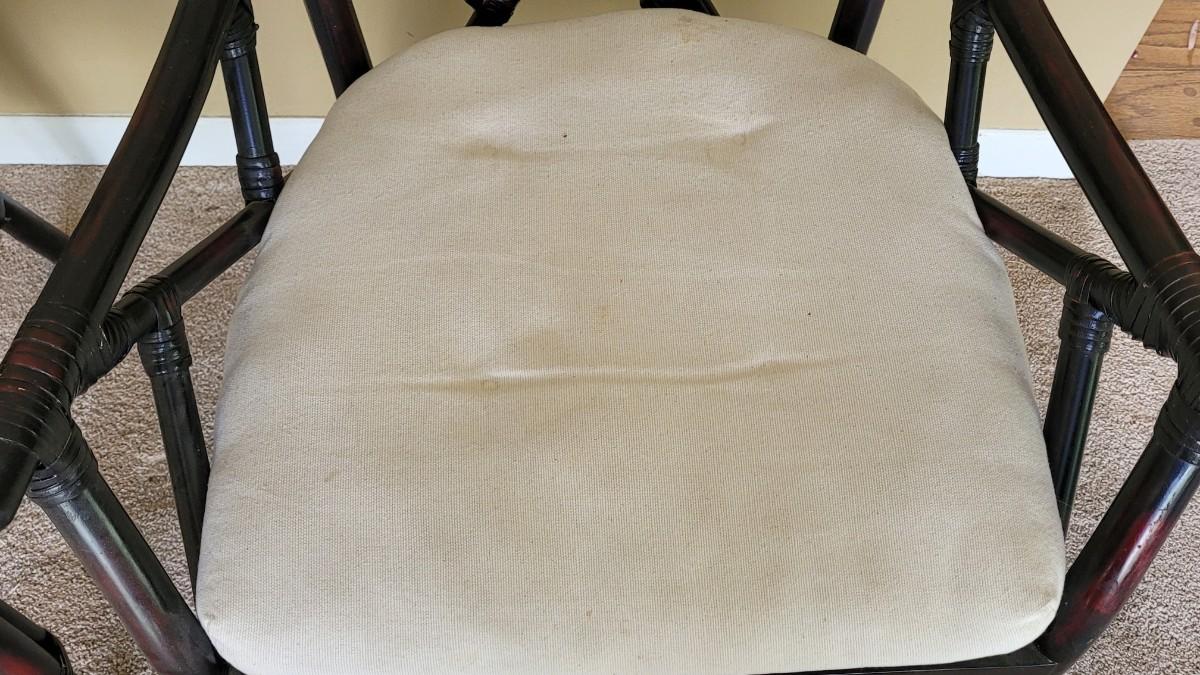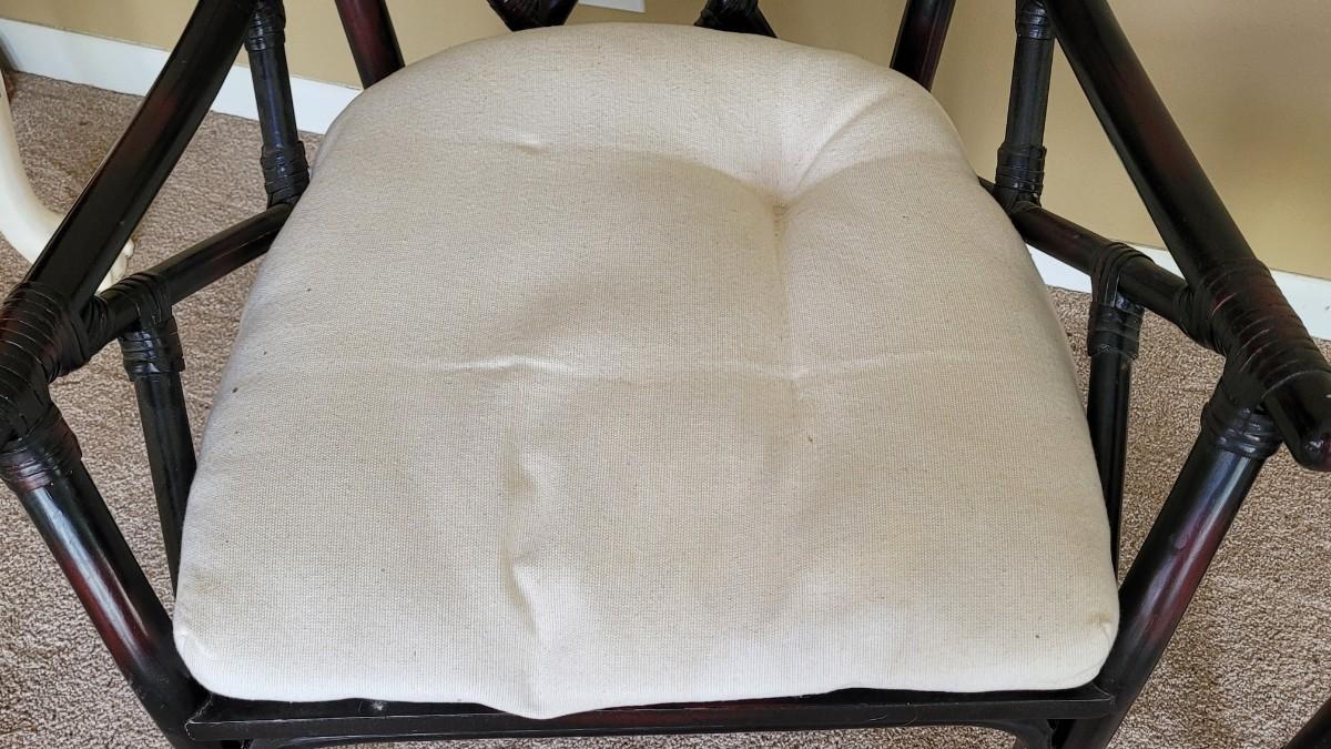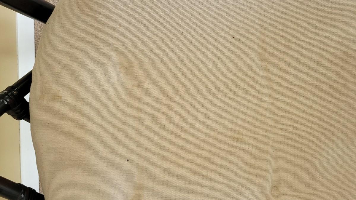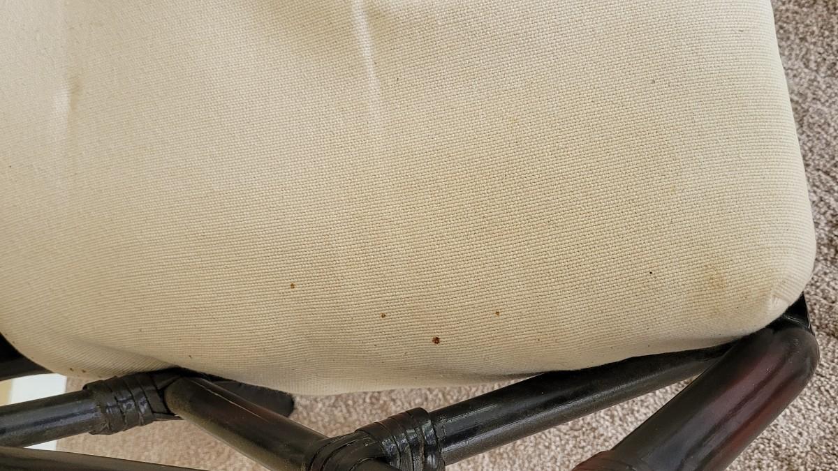 White Cushions have discoloration spots. Chairs are in nice condition.