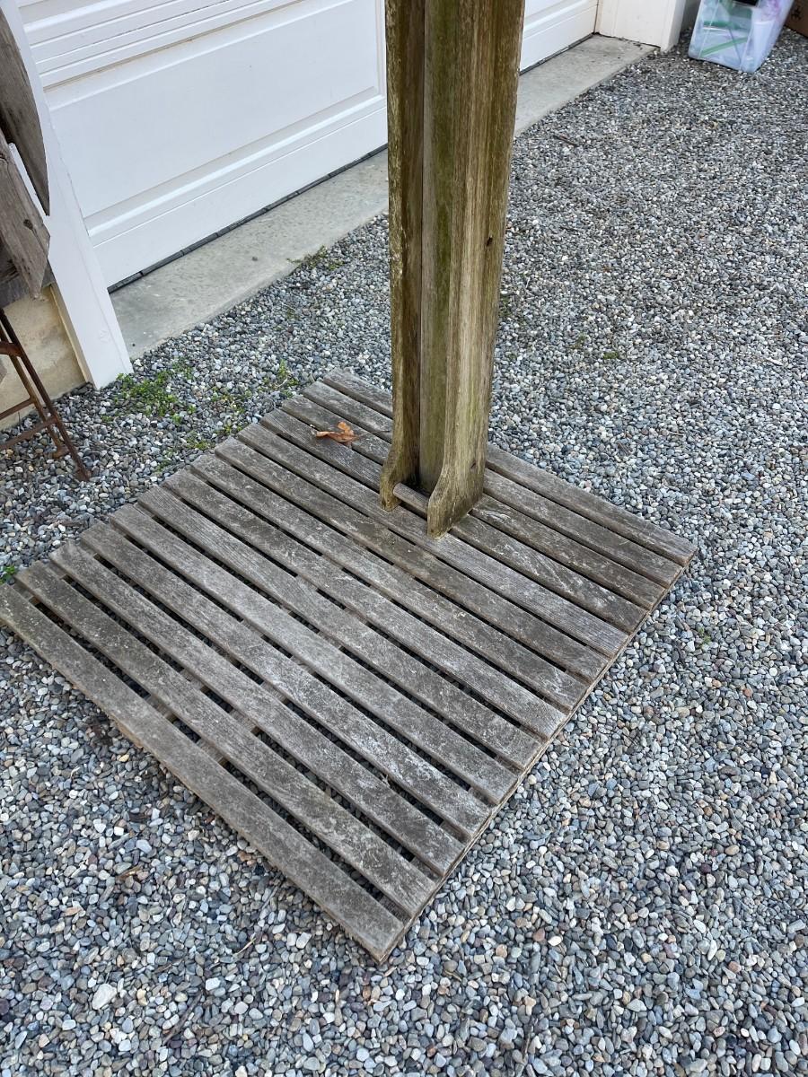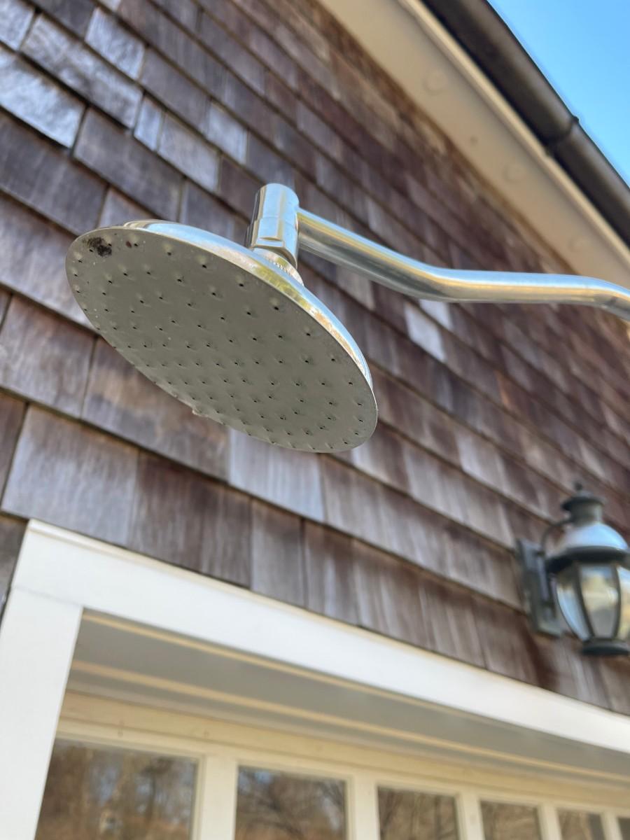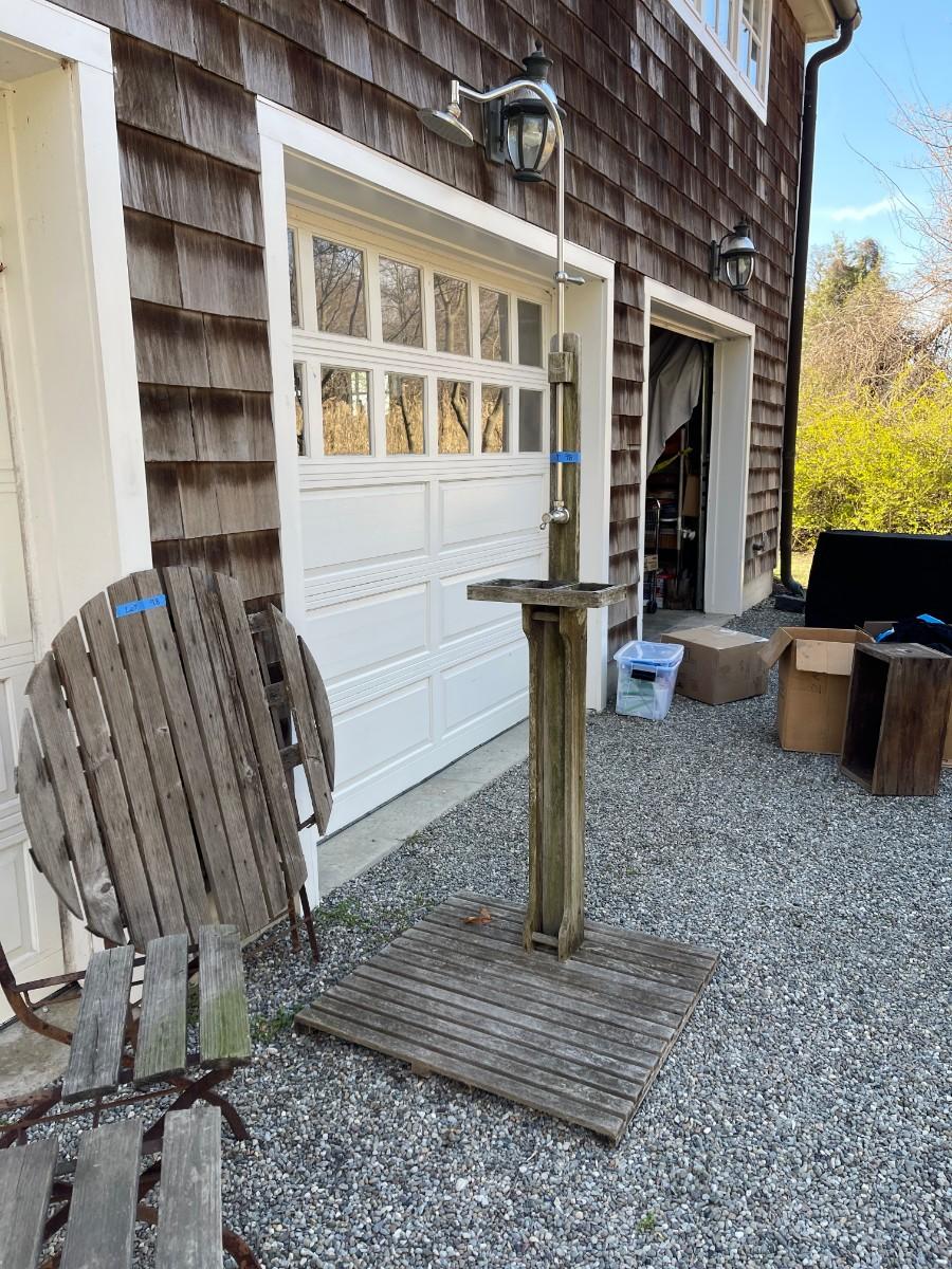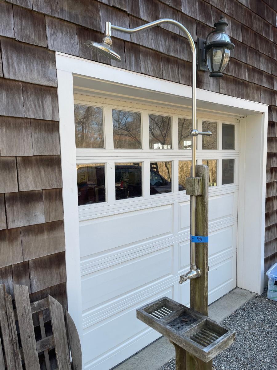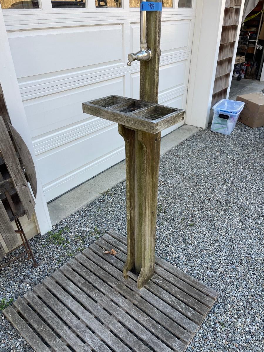 - wood and metal outdoor shower stand