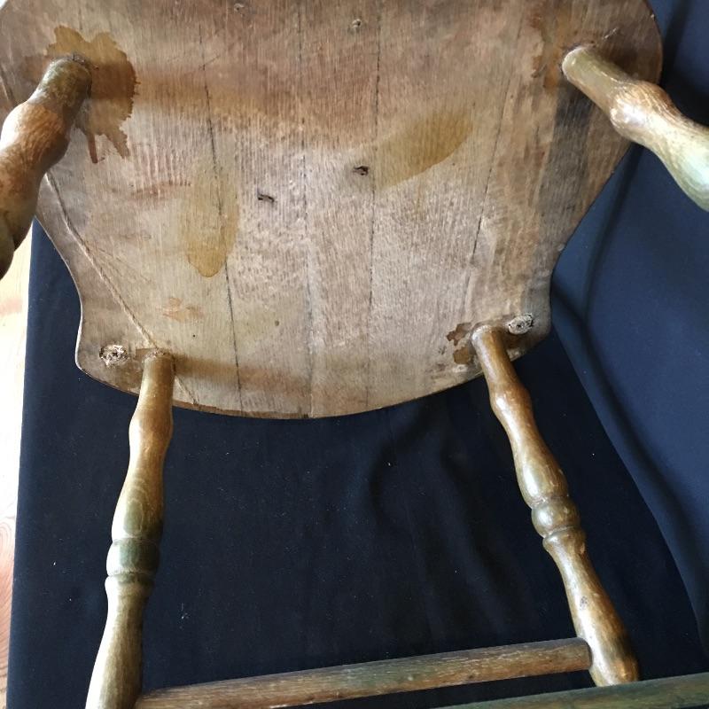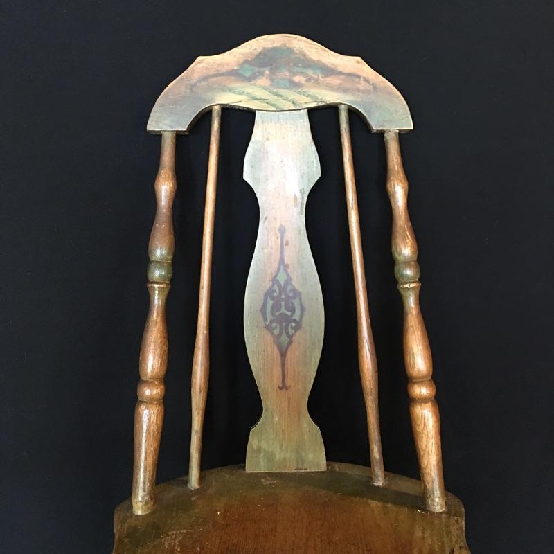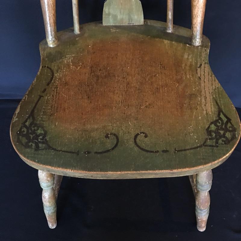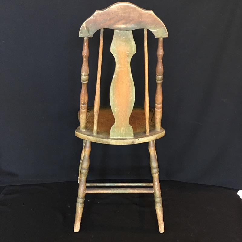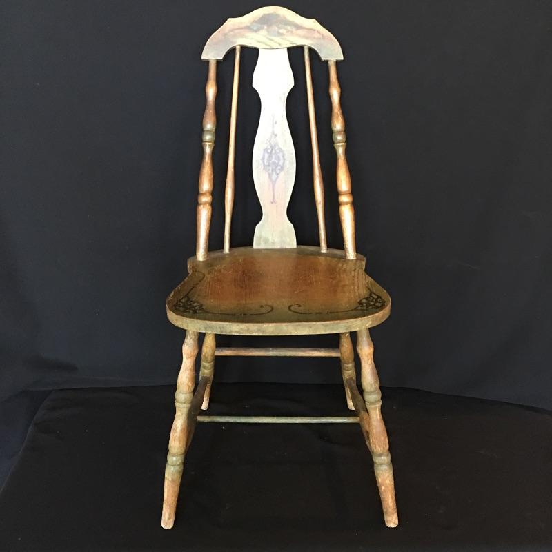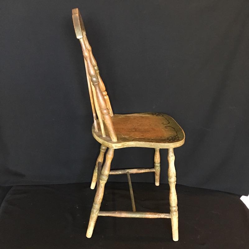 Antique side chair. Chair is well used but sturdy. Great petite chair for your office or anywhere else in your house. Chair measures 17.5” x 15.5” x 36”. Seat height 17.5”.