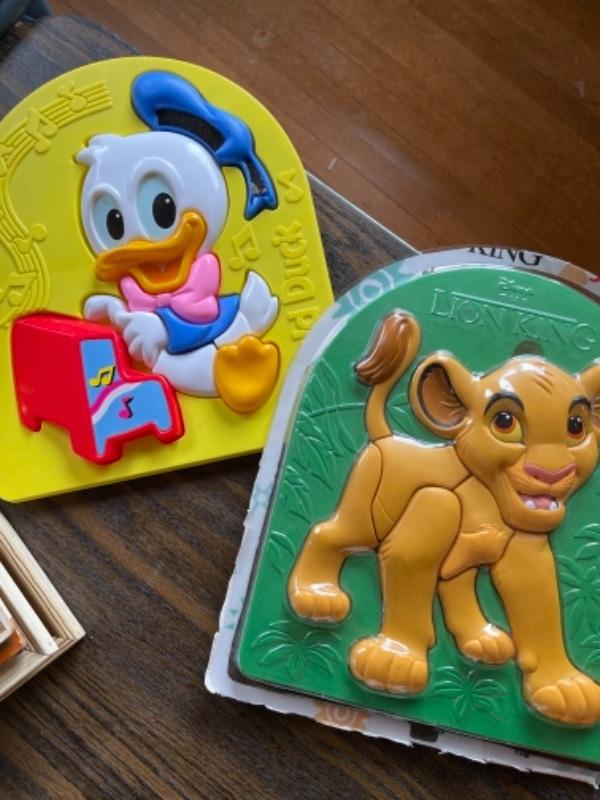 Lot 98. Assorted holiday, baby décor, vintage framed children’s art, two baby puzzles, blue glass bowl, planter--$45