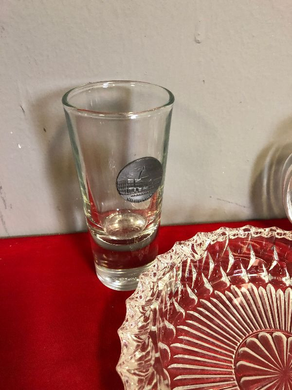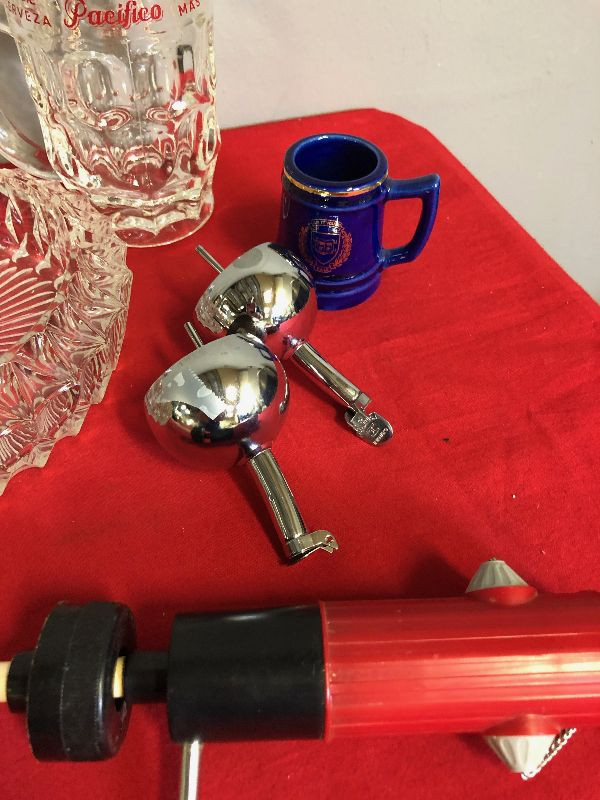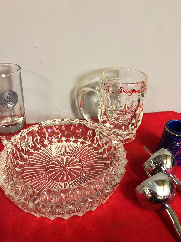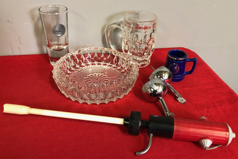 Lot 98 Bar ware lot: Ashtray, mug, shot-pump, jiggers