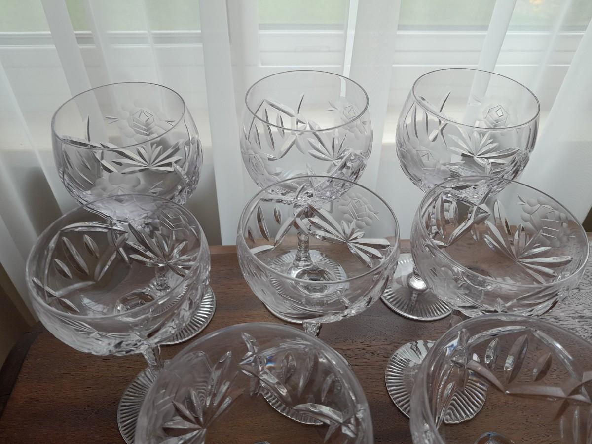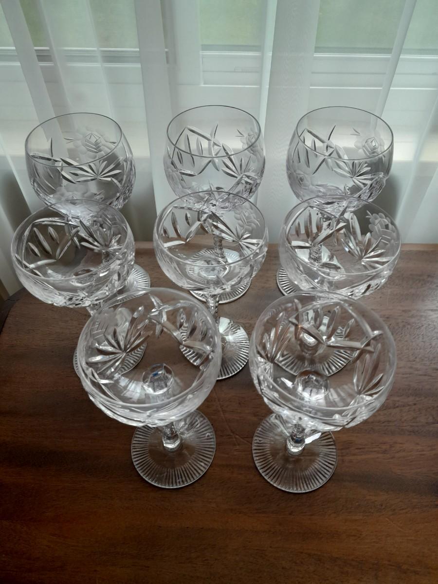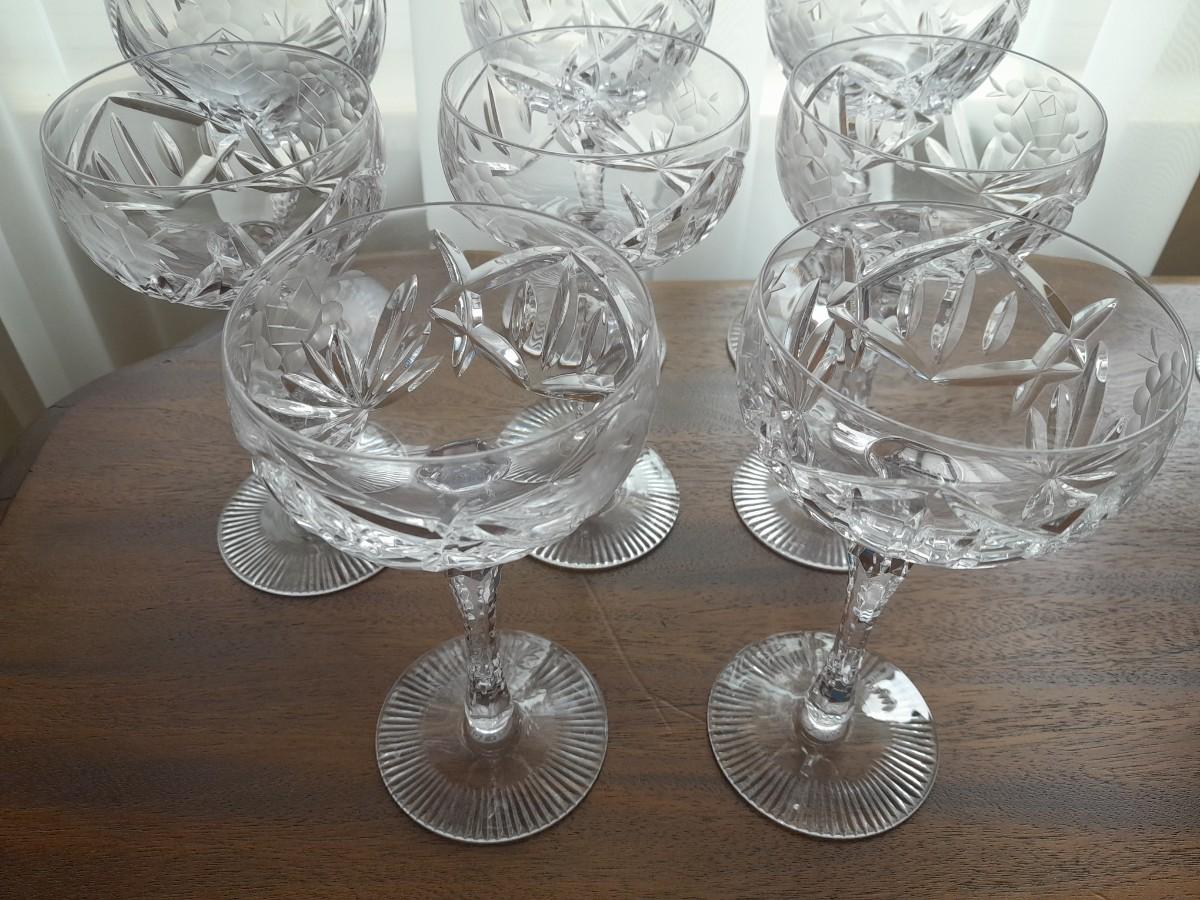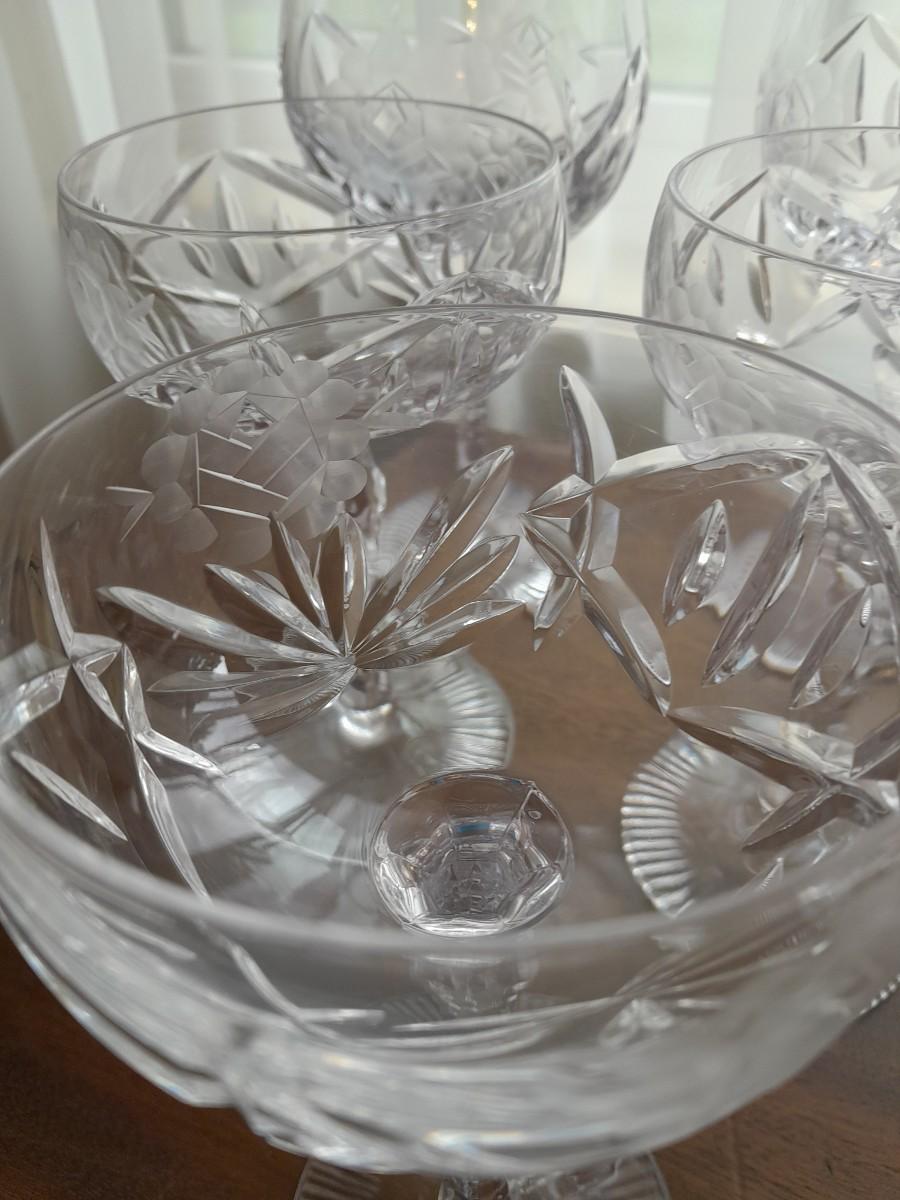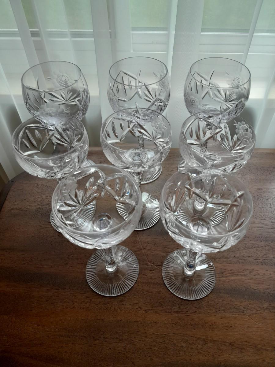 BEAUTIFUL STEMWARE GLASSES WITH WOODEN FLATWARE CHEST AND TUDOR PLATE BUTTER DISH