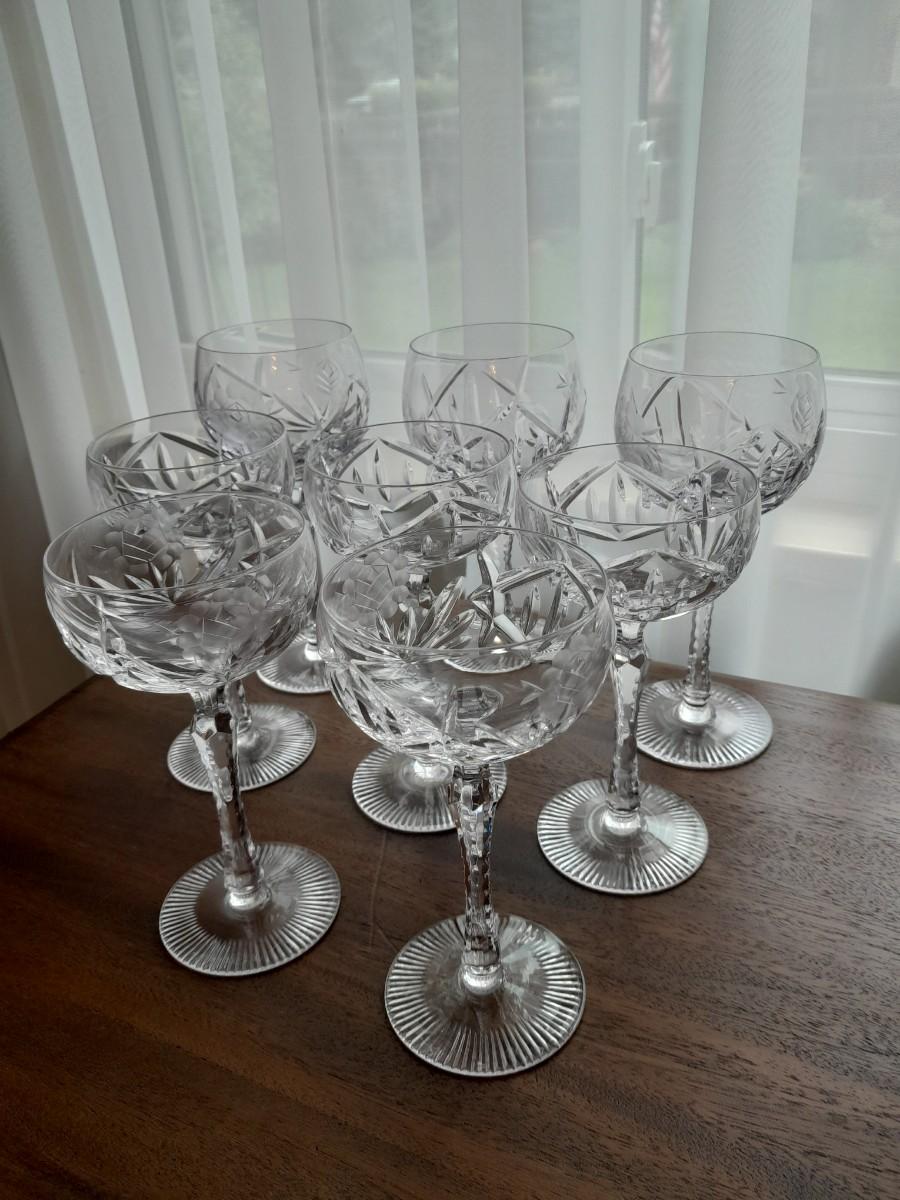 LOT 98 BEAUTIFUL STEMWARE GLASSES WITH WOODEN FLATWARE CHEST