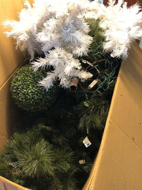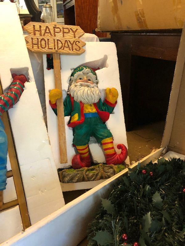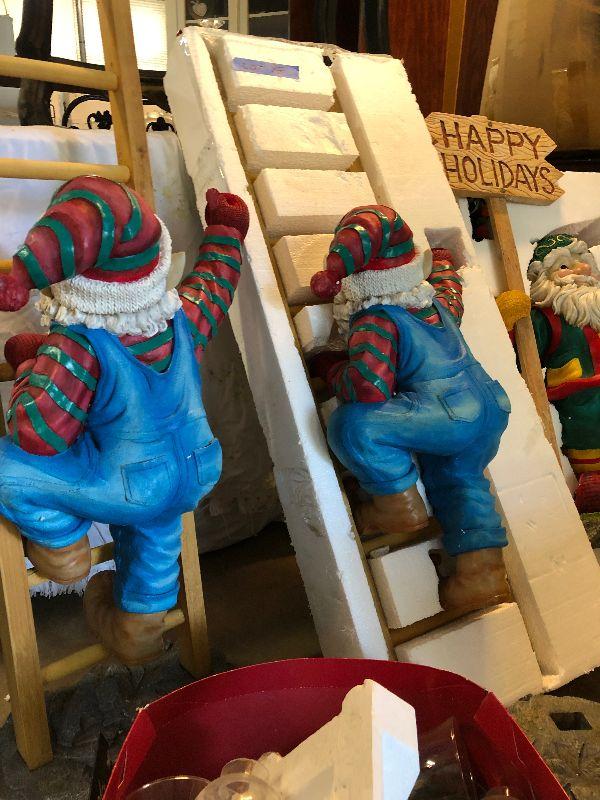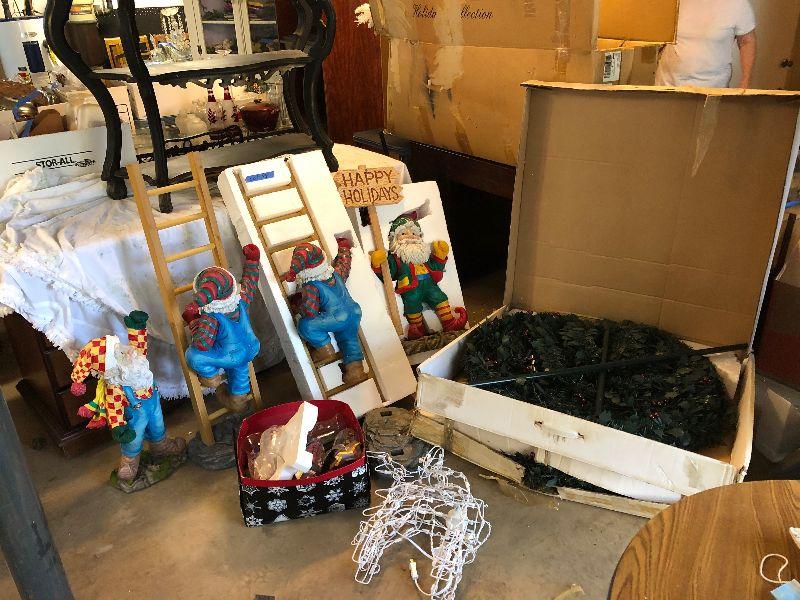 2 Santa on ladders, 6.5' Christmas tree and other miscellaneous items.