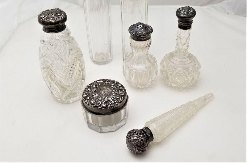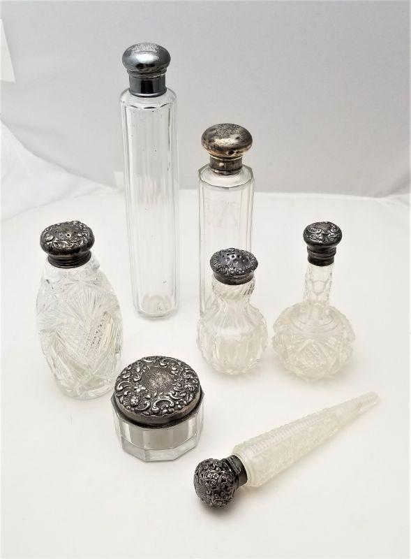 Lot #98  Collection of 7 Vanity bottles with Sterling Silver Tops