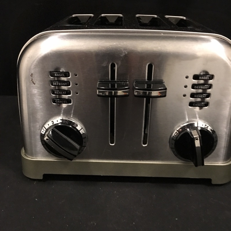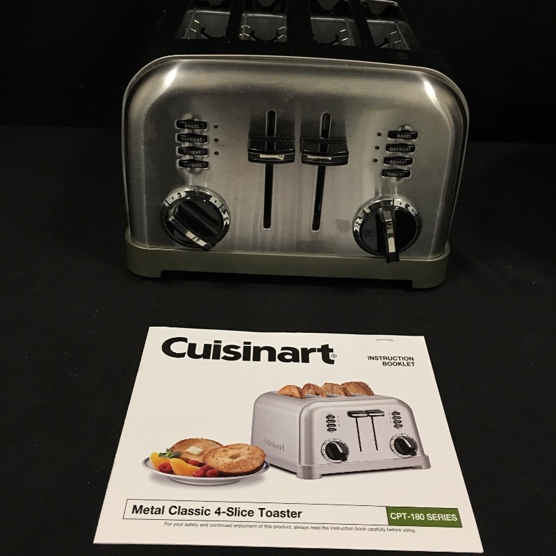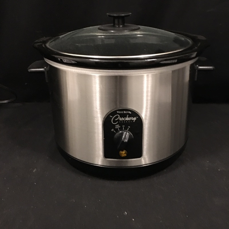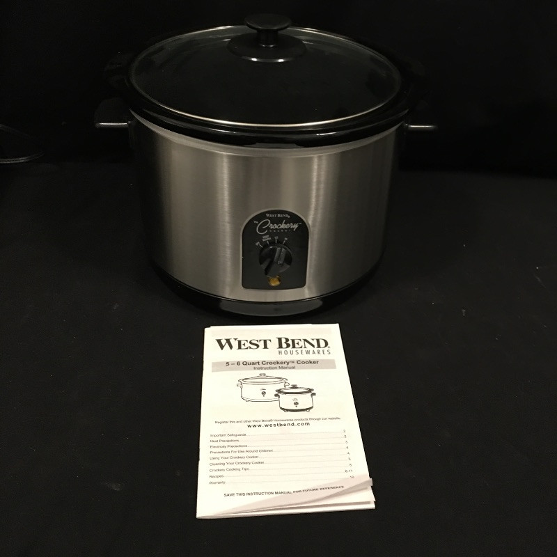 Two appliances every kitchen needs here with this Cuisinart four slice toaster and West Bend 5-6 quart crockery cooker. Both are sleek, stainless steel appliances.