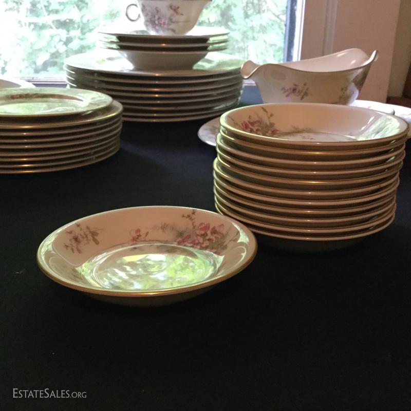 Fine China by Theodore Haviland, the pattern is Apple Blossom and there is a total of 48 pieces and 4 serving pieces. Lot available for shipping and local pick up in Saluda, NC.