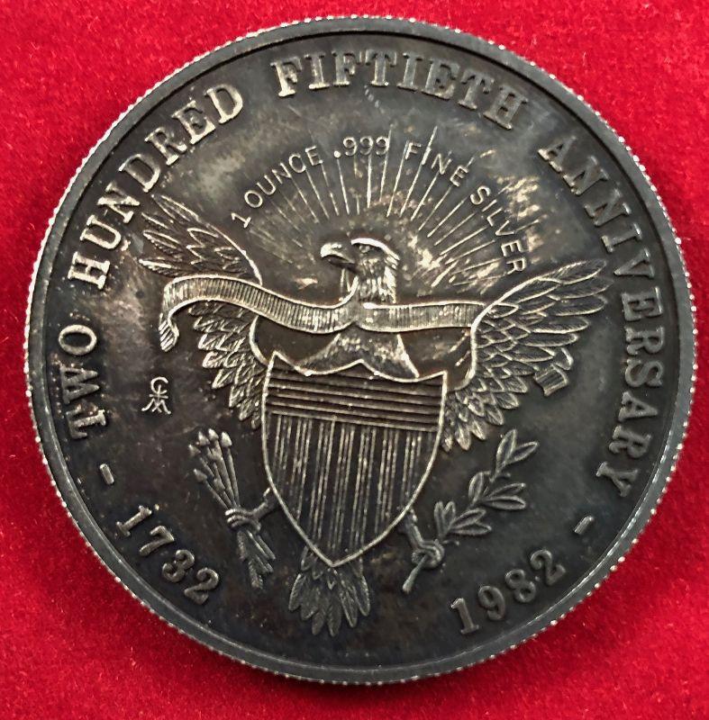 1 troy ounce silver commemorative coin of George Washington 250 Anniversary. patina of age. Item/items are as pictured, unless otherwise noted in title all coins are in circulated condition. Shipping at a flat rate anywhere in the US. $3.95 for first item $1 more per item after that, 12 or more items ships for $15. All shipped items must be paid for through PayPal