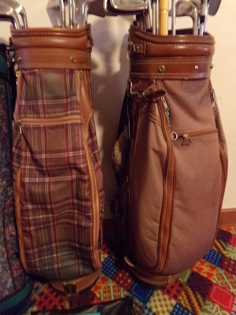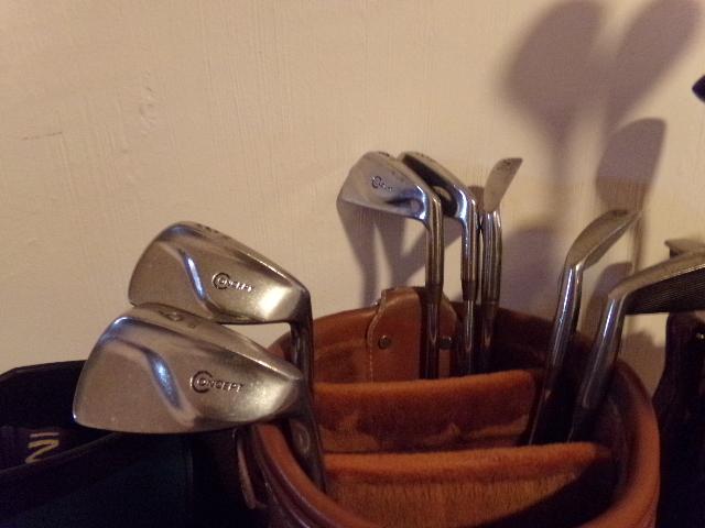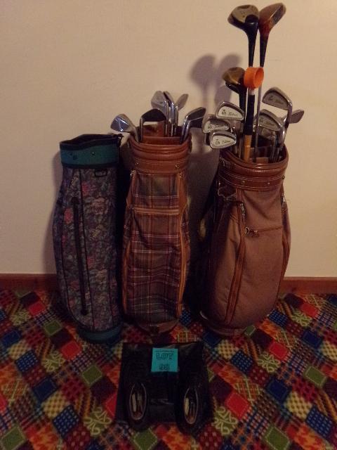 3 GOLF BAGS AND A VARIETY OF CLUBS