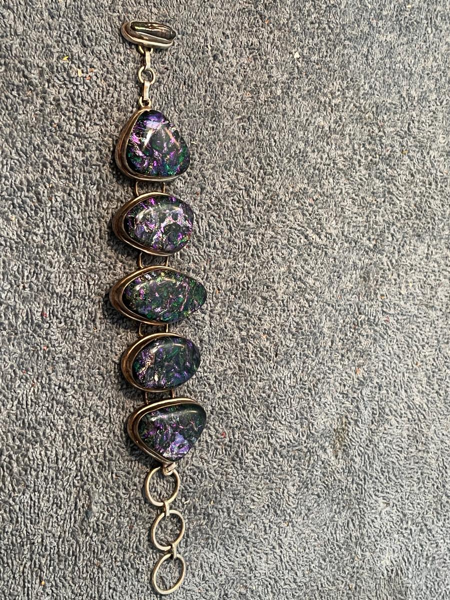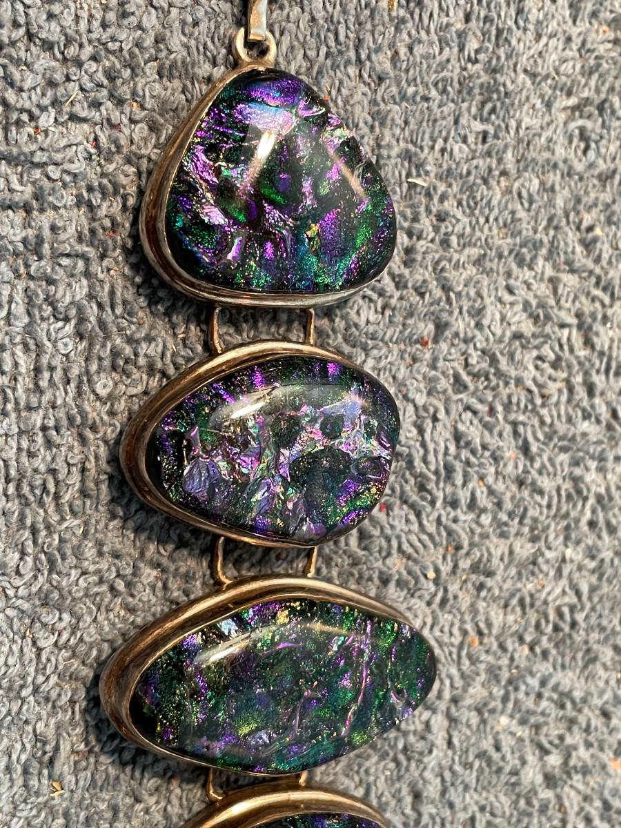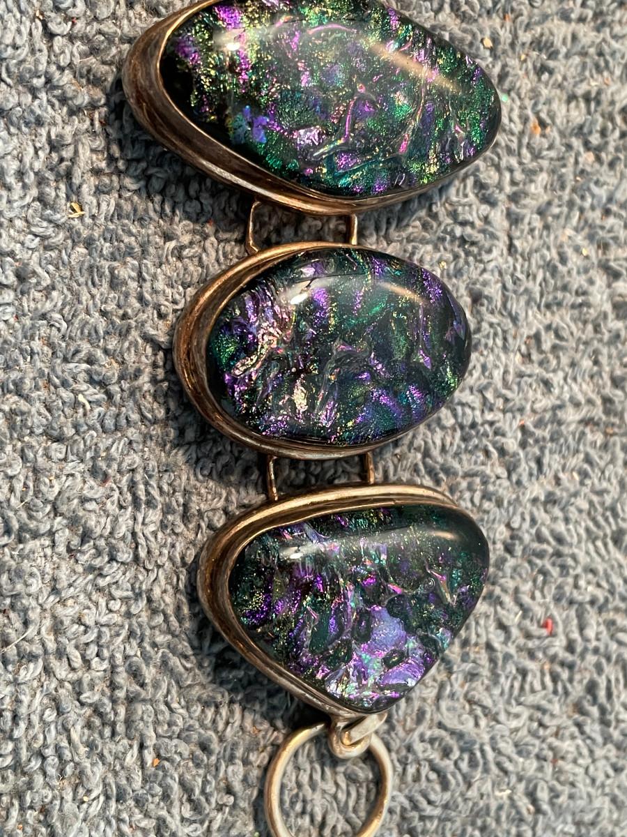 THIS IS A GORGEOUS STERLING DICHROIC GLASS BRACELET!!! 78.95GR TW.. (LARGEST PIECE) IS 1 5/8'' X 8 3/4''.. LIGHT WEAR..