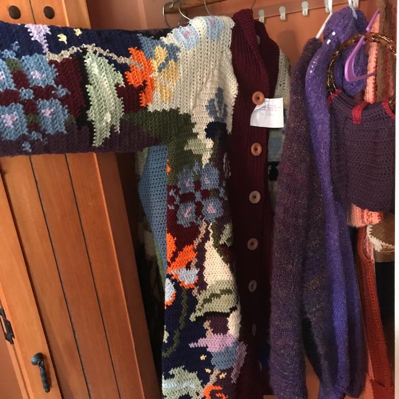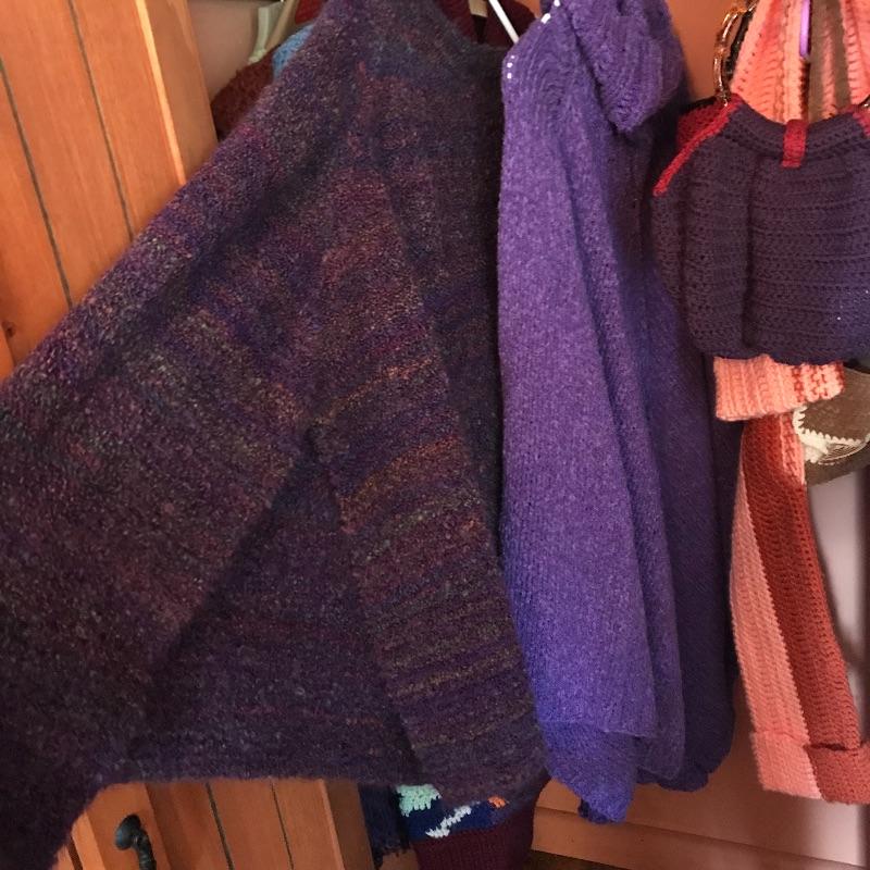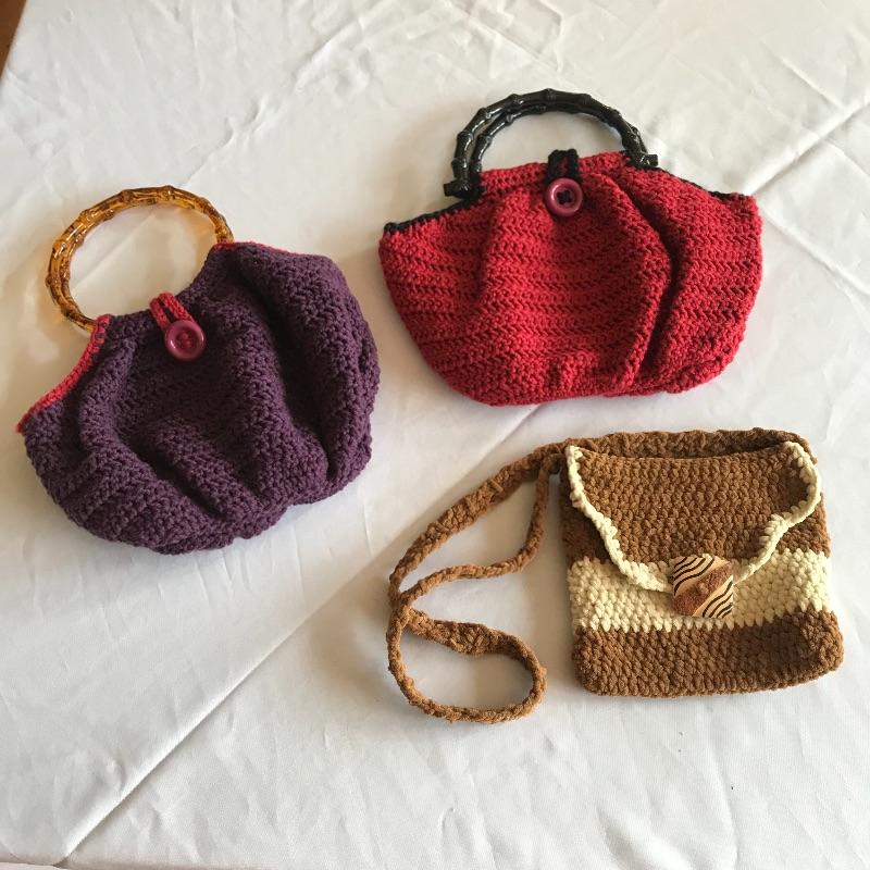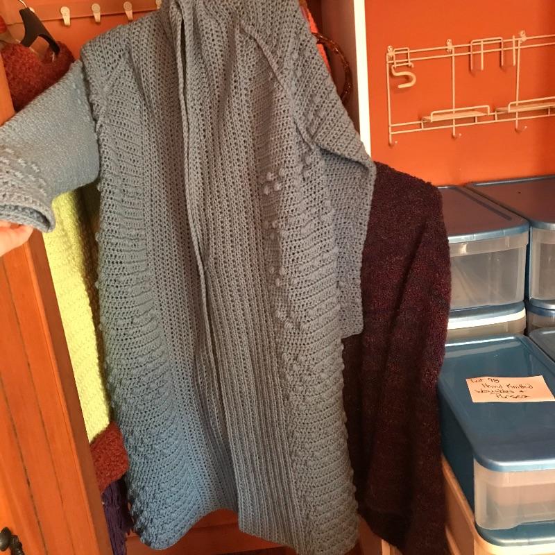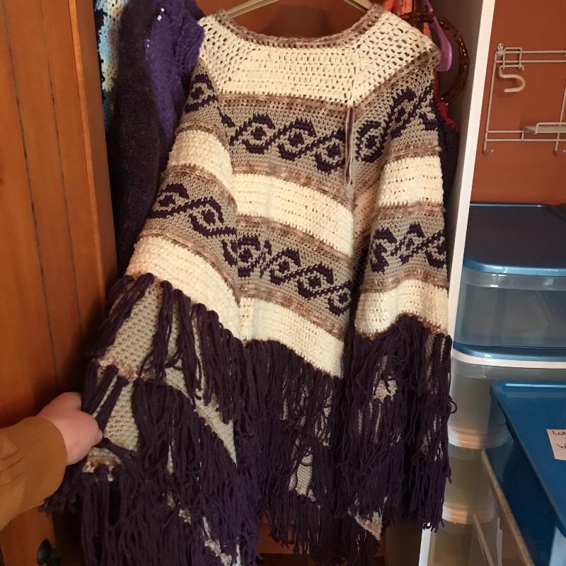 Add some unique flair to your wardrobe this chilly season! Three purple toned ponchos including a very elaborate and heavy piece. A lime green and burnt orange “Jackie O” style jacket, a baby blue and festive colored button ups as well. Lot also includes a lime green vest, three small purses and a like new scarf. Jackets and vest appear to be XL-XXL. See photos. Shipable