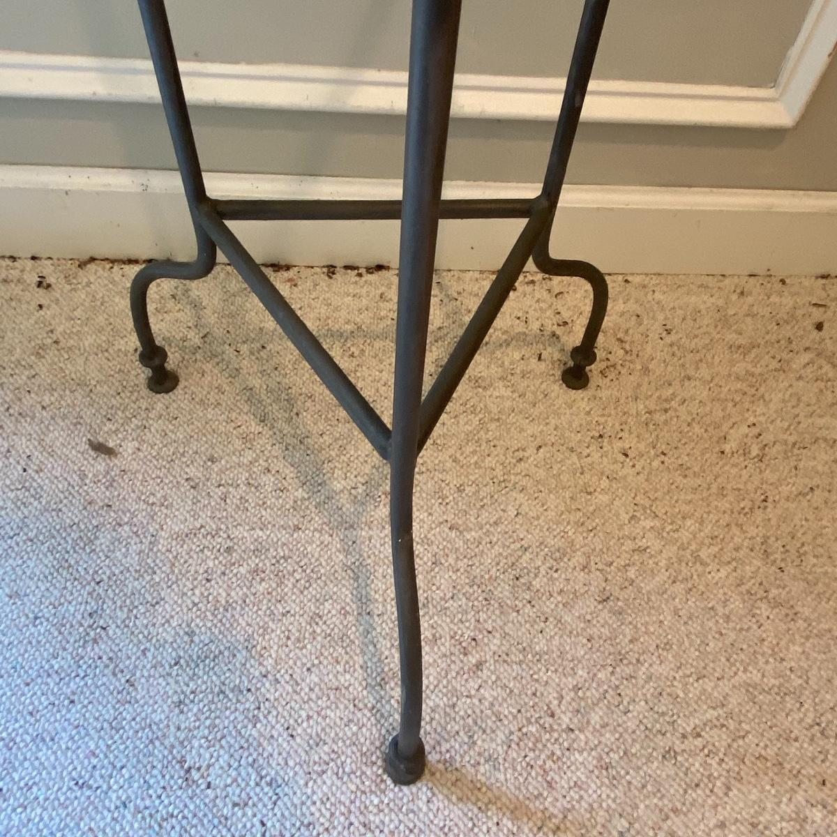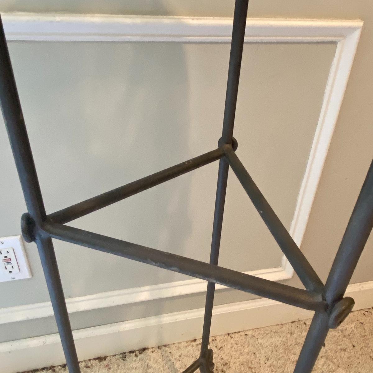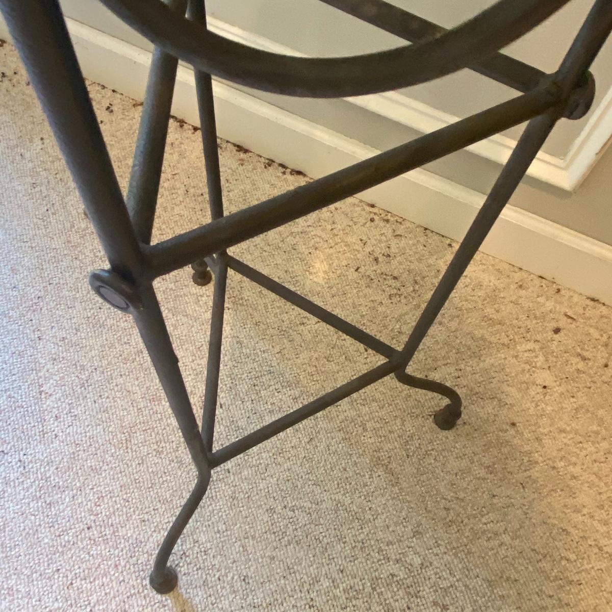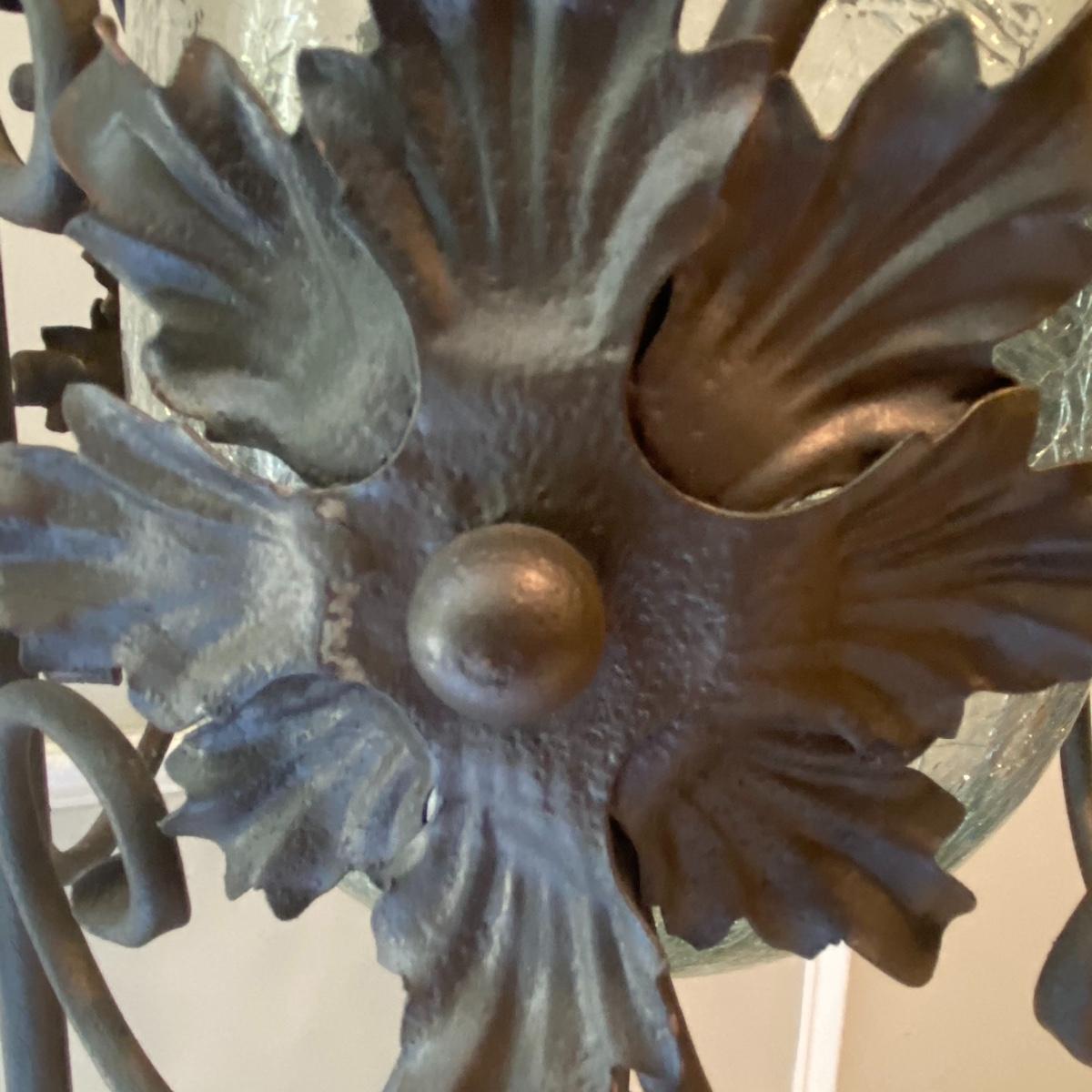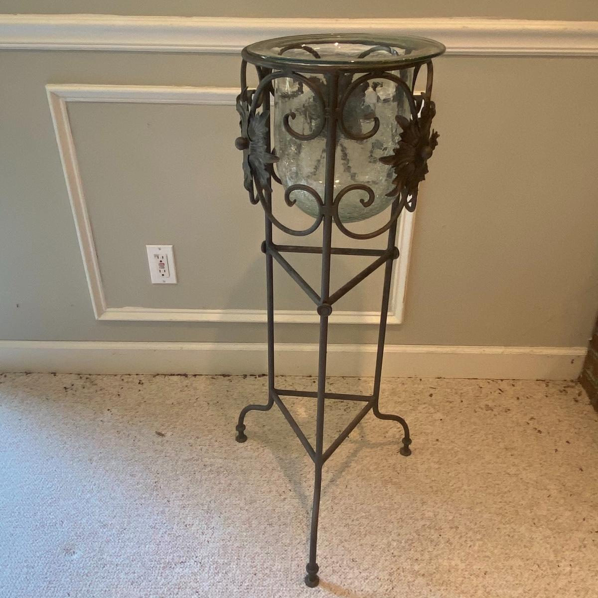Lot includes three hurricane stands perfect for interior or exterior decor. Tallest stand measures 56” tall and all three glass bulb inserts have a diameter of 10”. Stands are iron with glass insert on top.