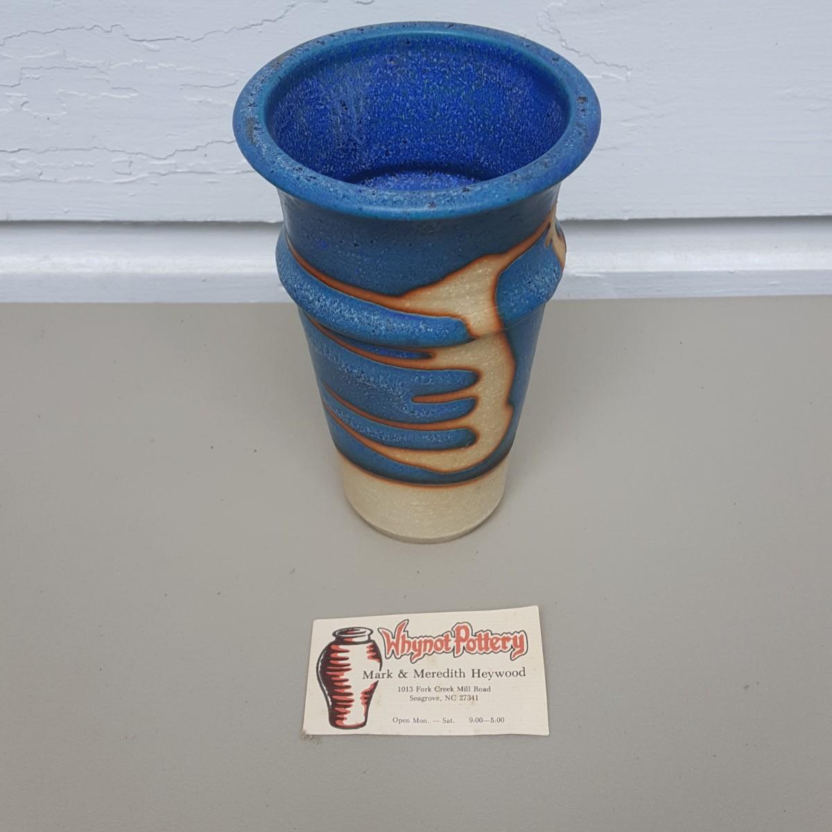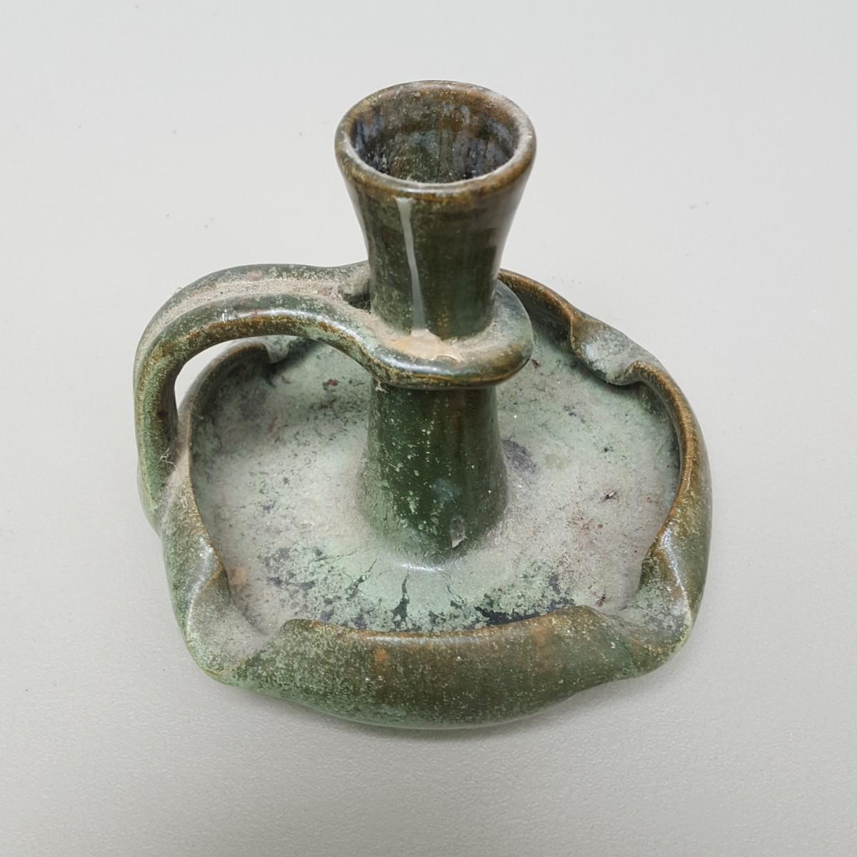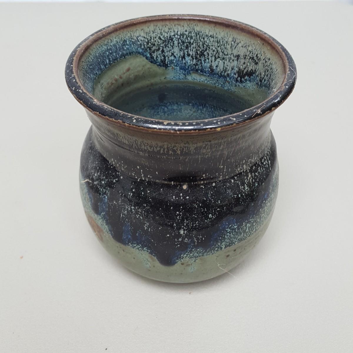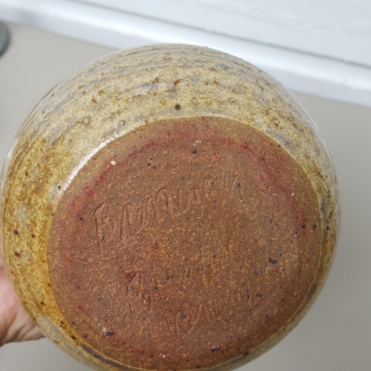Check out this pottery lot! Several great pottery pieces here. Numerous vases (the tallest is 10” high), candle holders, a hurricane lantern (6"x14"), a lidded bottle (8"x5"), a shell wall hanging (3"x5") and more. All the pictures show the bottom of the pottery and whether they are signed by the artist or not. All items are in good condition except a chip or two (see pics).