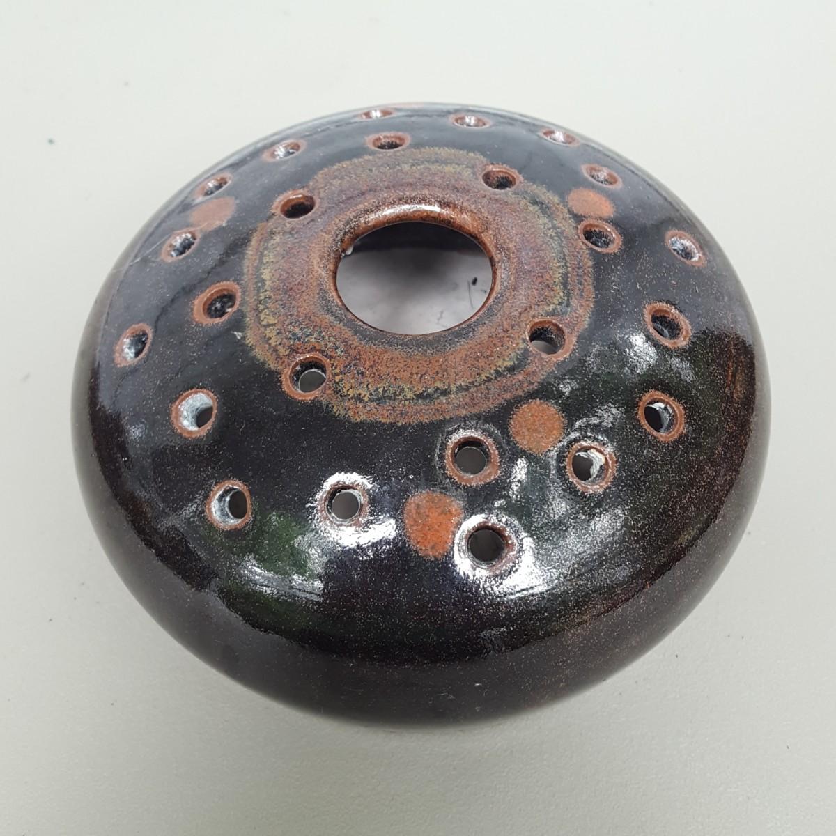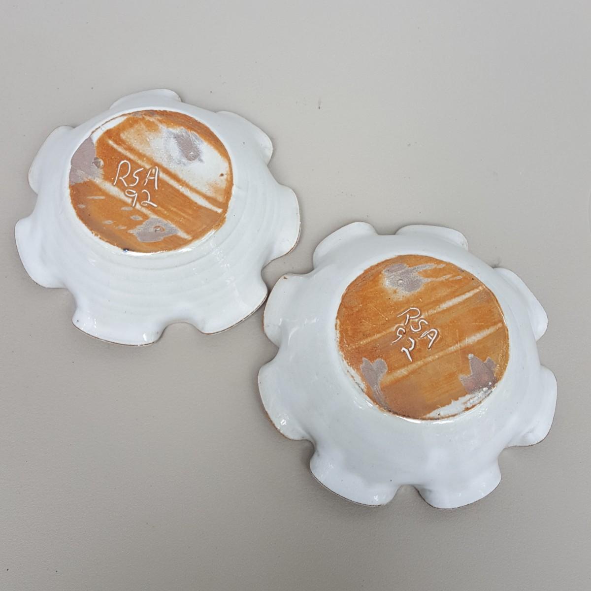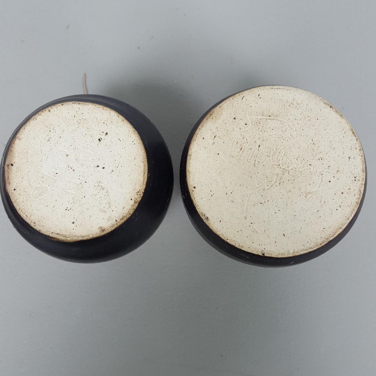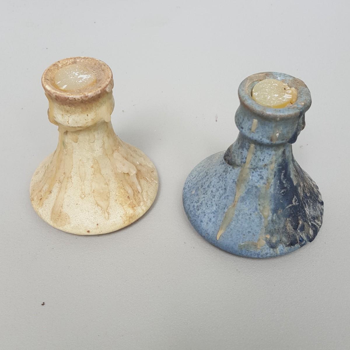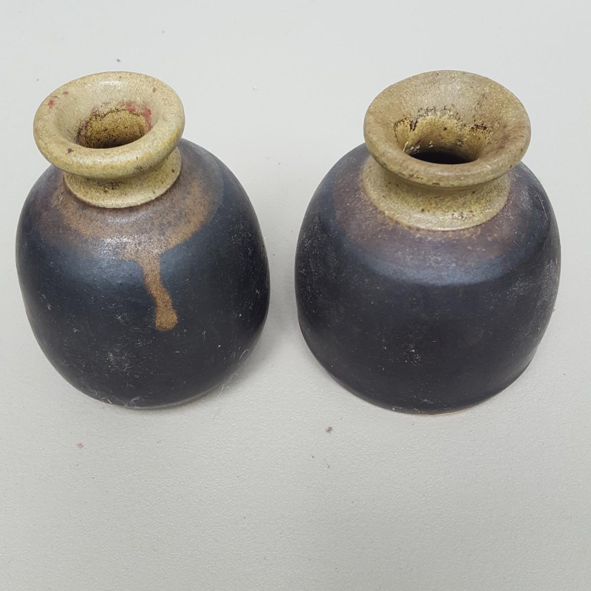 Check out this pottery lot! Several great pottery pieces here. Numerous vases (the tallest is 10” high), candle holders, a hurricane lantern (6"x14"), a lidded bottle (8"x5"), a shell wall hanging (3"x5") and more. All the pictures show the bottom of the pottery and whether they are signed by the artist or not. All items are in good condition except a chip or two (see pics).