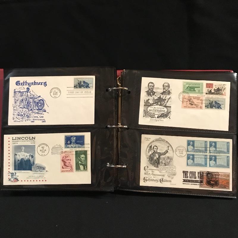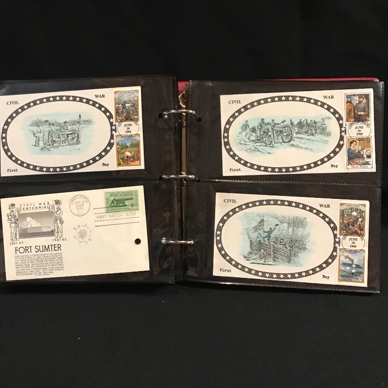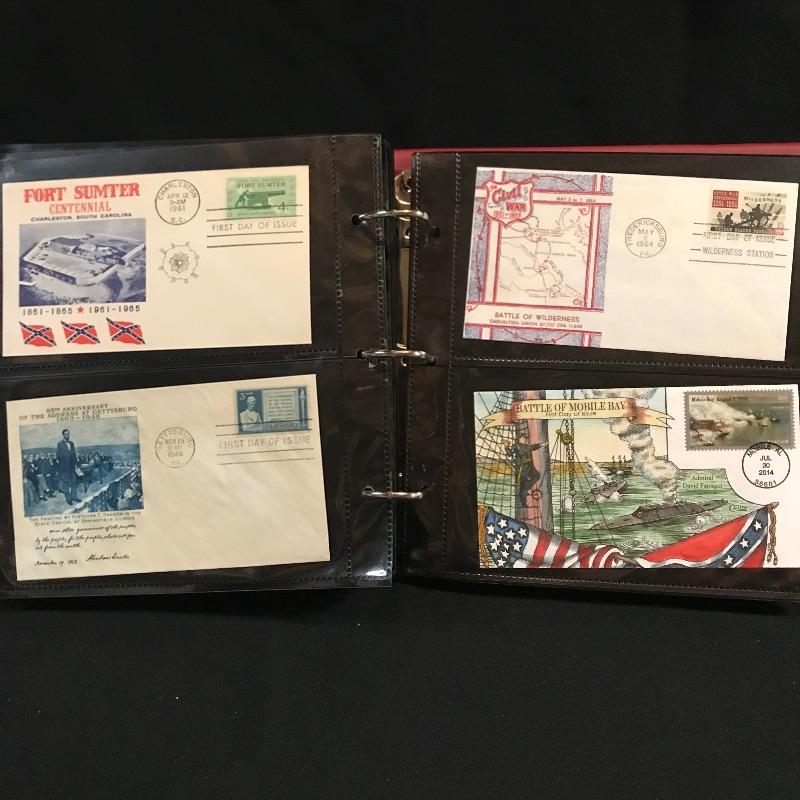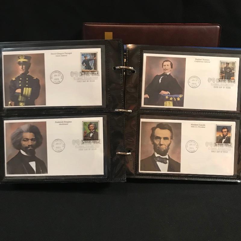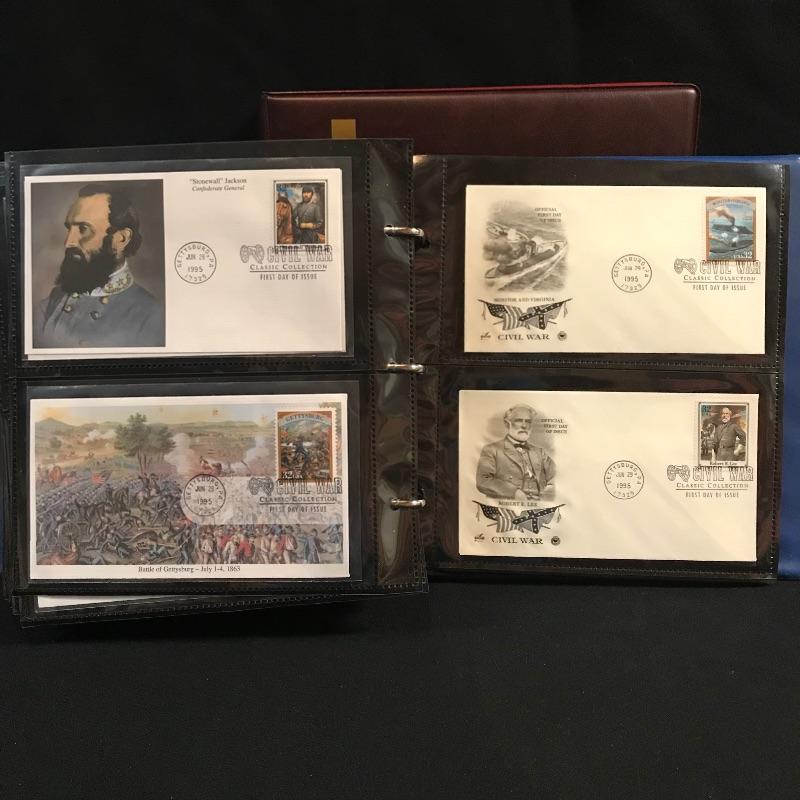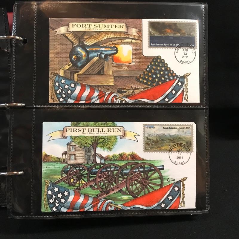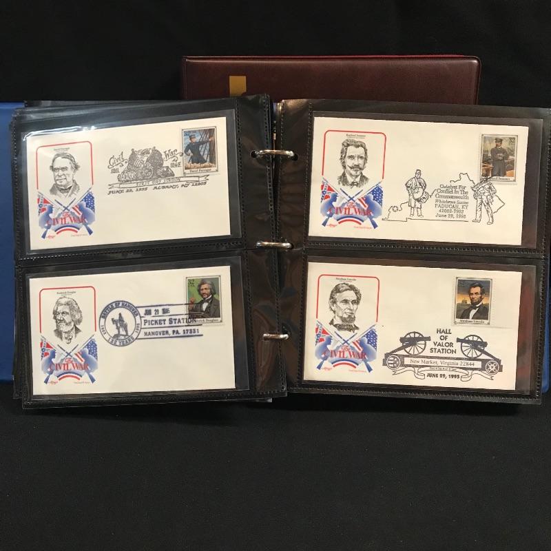 Two binders mostly full with four covers per page commemorating the Civil War and prominent figures. Stamps date back to the late 1940s up past 2010. Many duplicate stamps with various cachet designs. A few were found to be numbered and signed.
