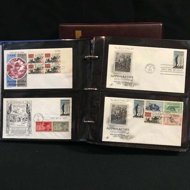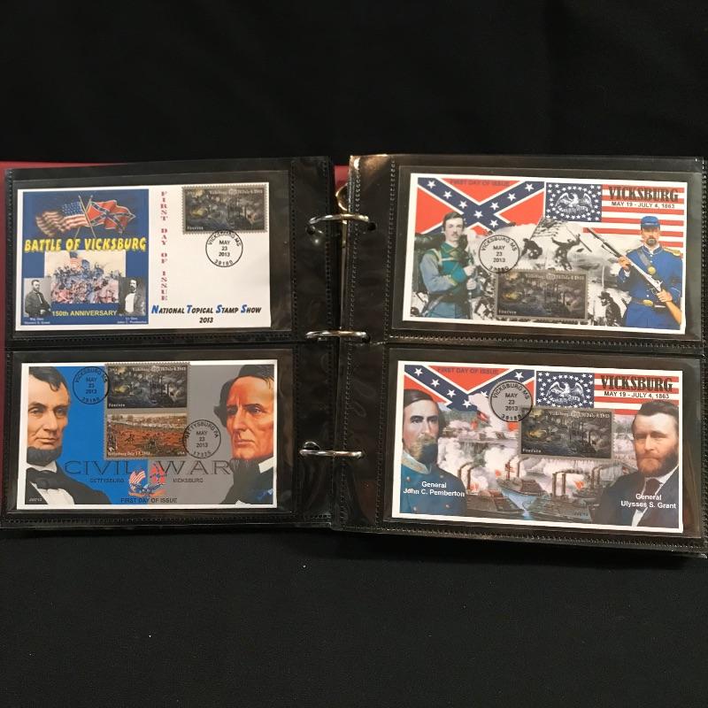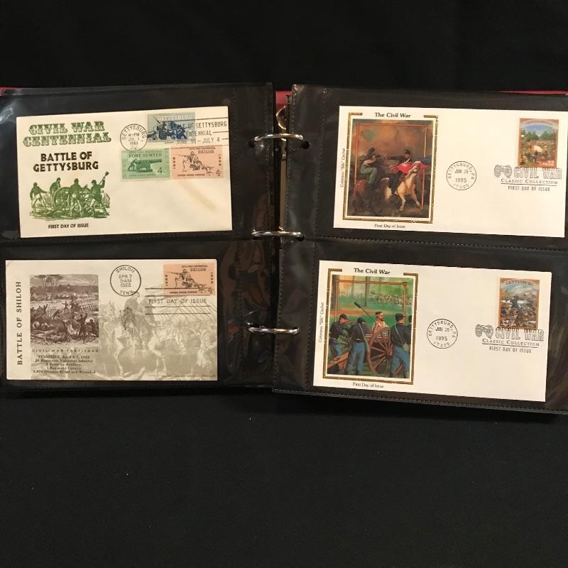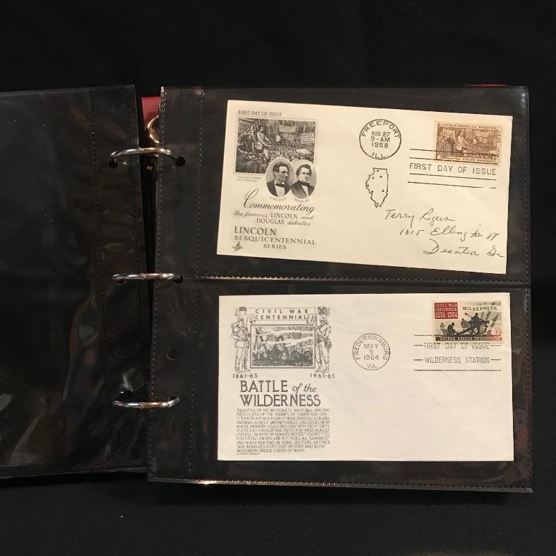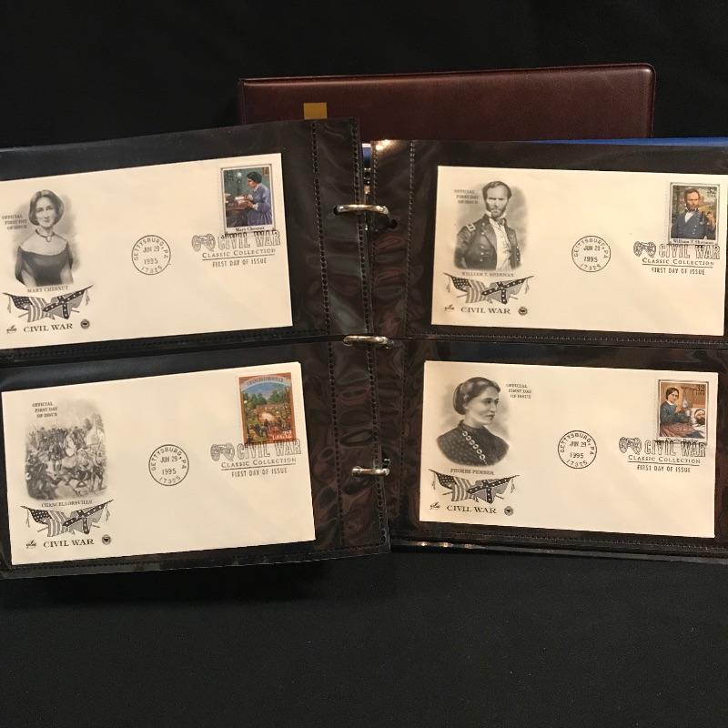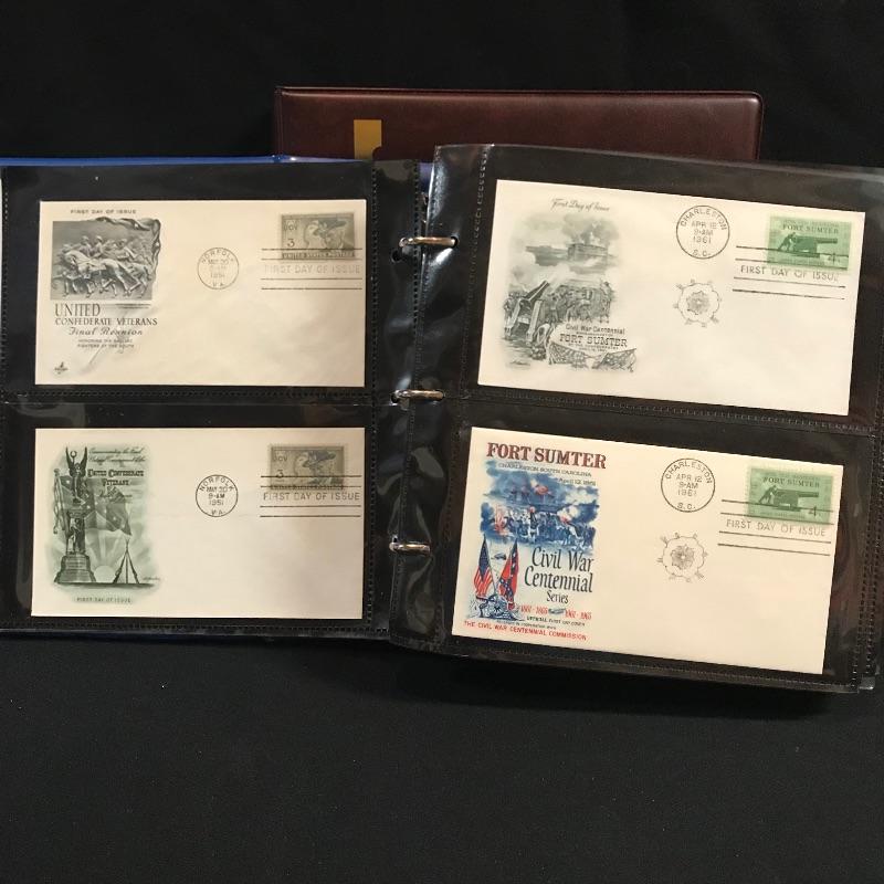 Two binders mostly full with four covers per page commemorating the Civil War and prominent figures. Stamps date back to the late 1940s up past 2010. Many duplicate stamps with various cachet designs. A few were found to be numbered and signed.