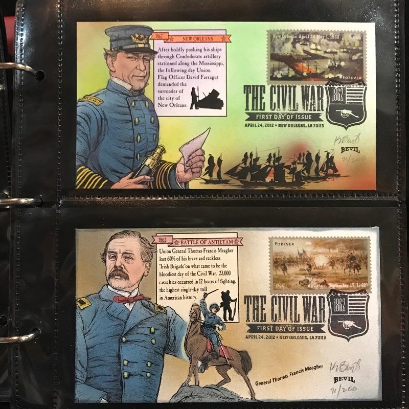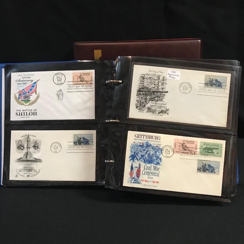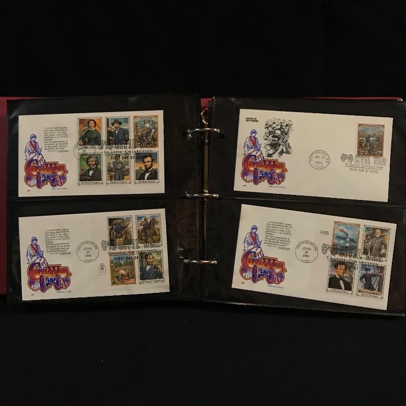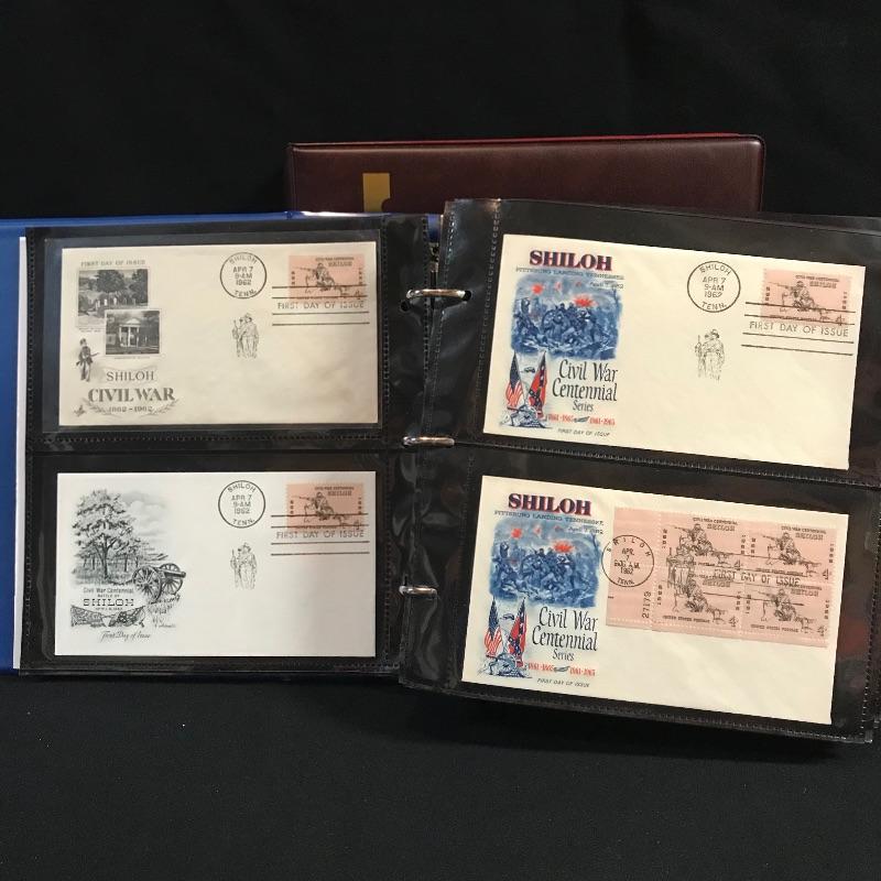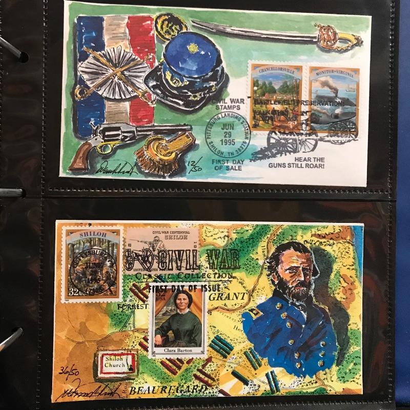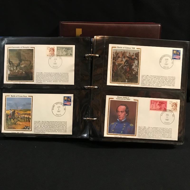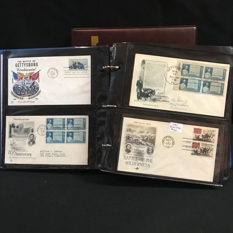Two binders mostly full with four covers per page commemorating the Civil War and prominent figures. Stamps date back to the late 1940s up past 2010. Many duplicate stamps with various cachet designs. A few were found to be numbered and signed.