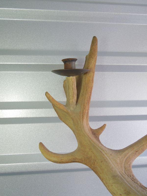 I beleive these are caribou antlers. 42" H x 32" W. No damage noted. Sits very upright and well balanced. Three metal candle holders.