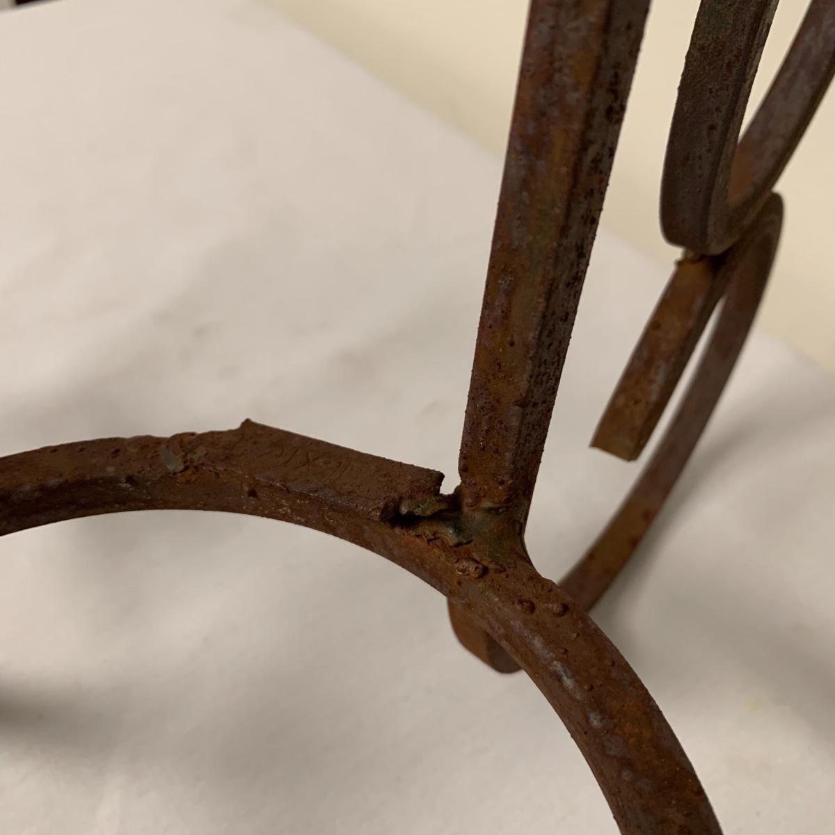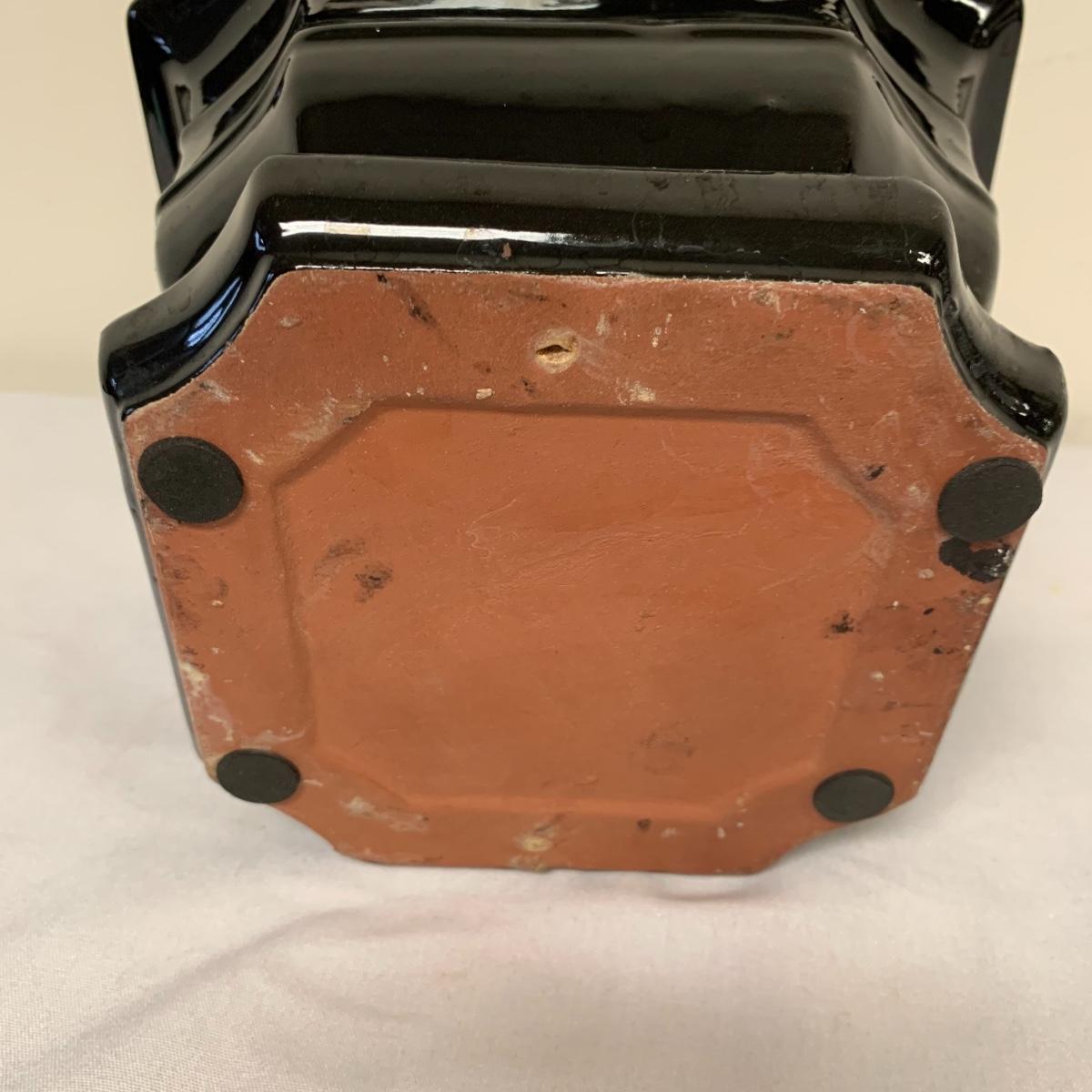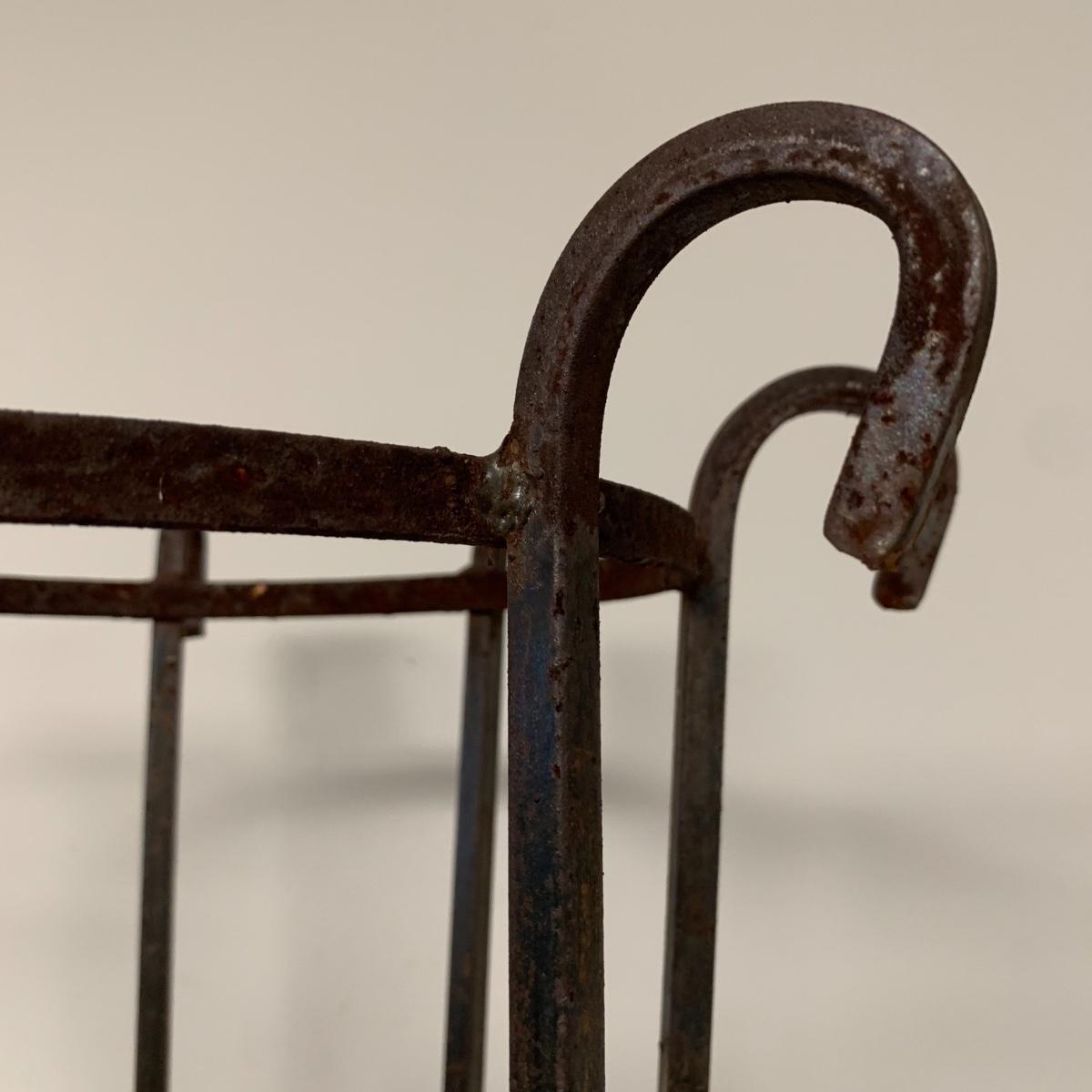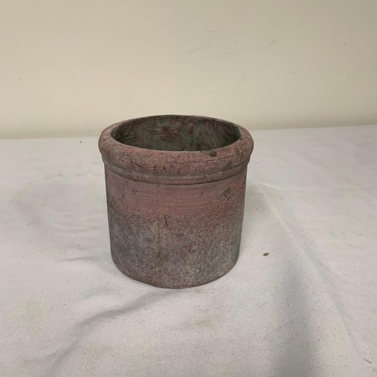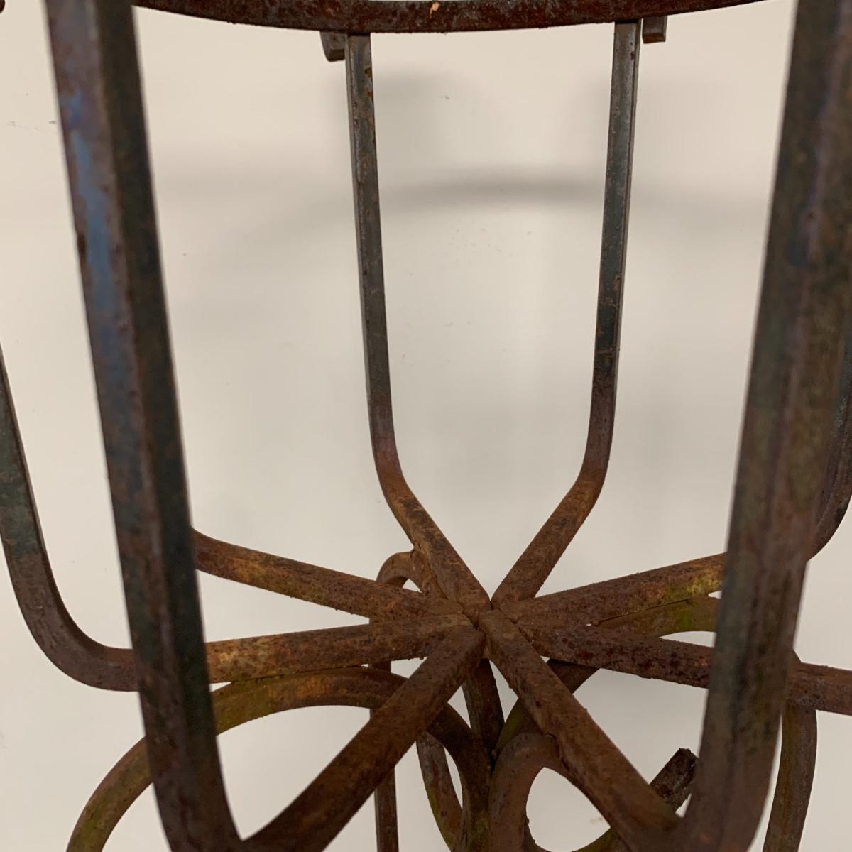 This lot includes one large metal garden pot holder / stand and three ceramic pots. The garden stand is made of a sturdy metal but is very rusted (see photos). It is slightly chipping at the base of the stand (see photos). The stand measures about 16in x 16in x 36in. The lot also includes one 8in x 6in black pot, one 5in x 5in purple / gray pot, and one 4.5in x 4in pink pot. The purple / gray pot has some small cracks (see photos). Shipping not available.