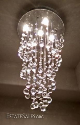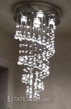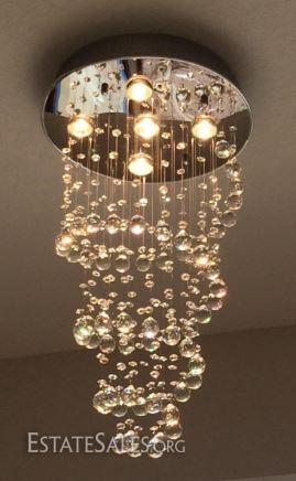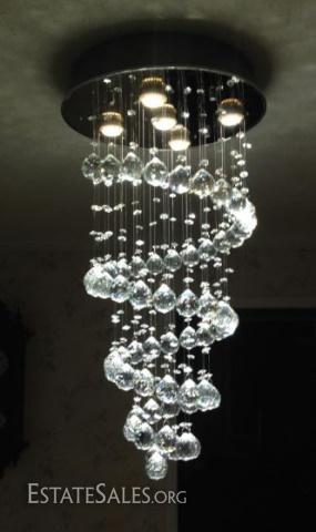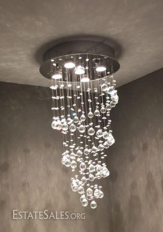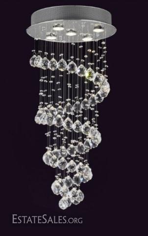LOT 98: MODERN CHANDELIER, RAIN DROP HELIX WITH CRYSTAL BALLS