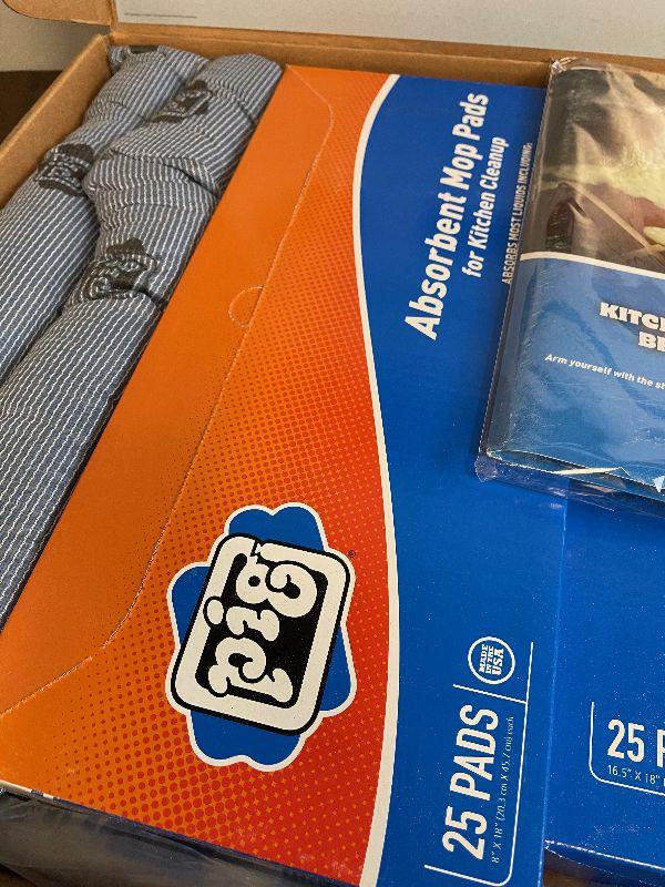 NEW Mop pads, spill pads, spill control sock, flat mop.
