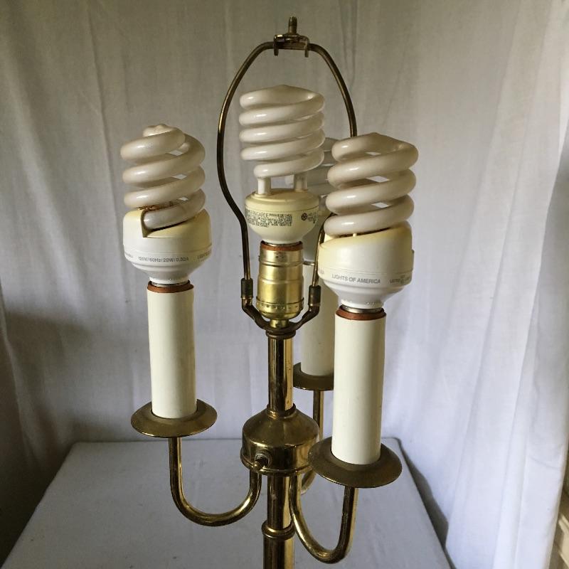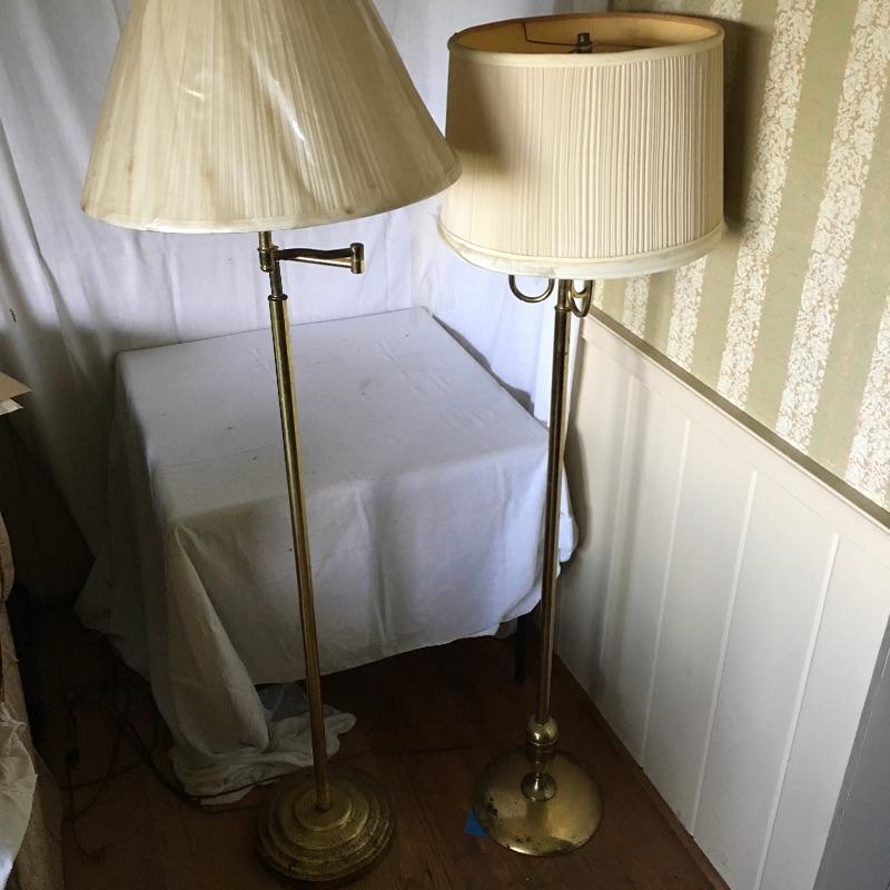 Pair of floor lamps. One lamp has four bulbs and the other is a single bulb Both need a good cleaning and have some rust and scratches, see pictures.