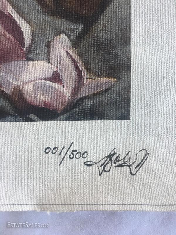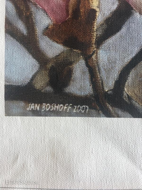 Original unframed canvas flower art by Jan Boshoff, signed and numbered 1/500 in 2007: 17.5"L x 16"W