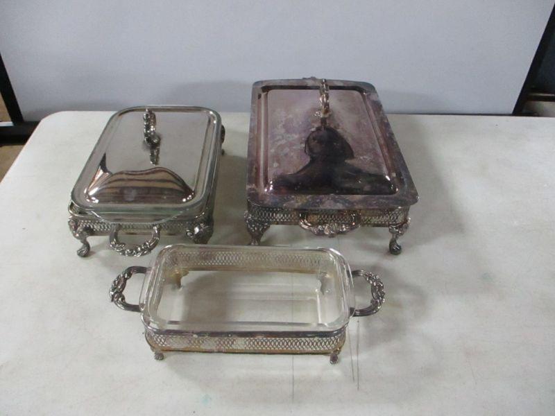 Lot 98 - Silver Plated Chaffing Dishes With Glass Dish