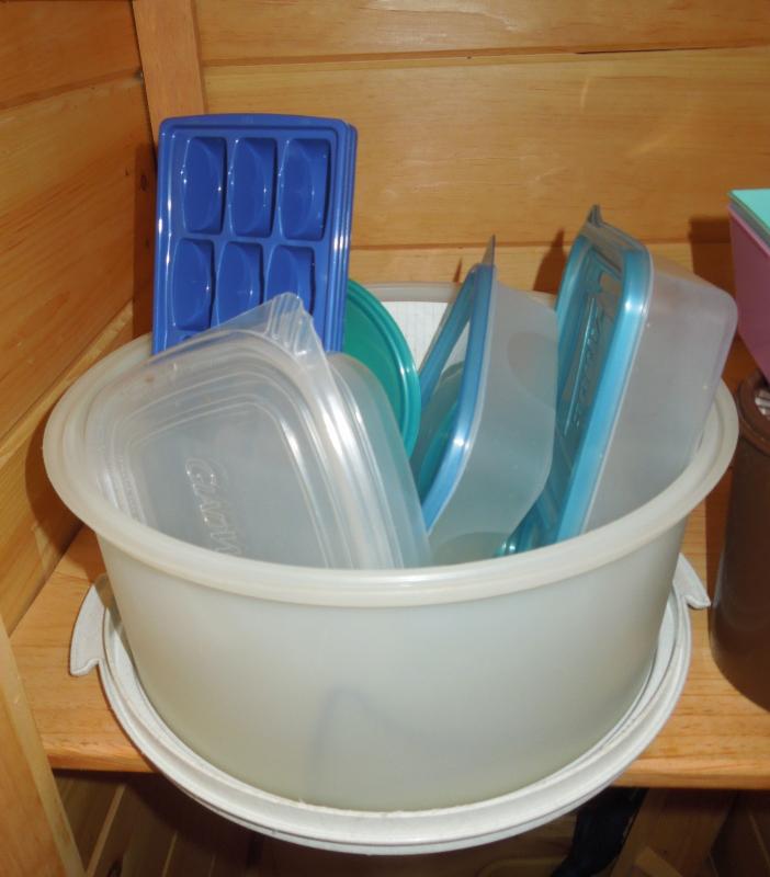 Covered Cake Carrier; Assorted Rubbermaid Take Alongs and others pictured