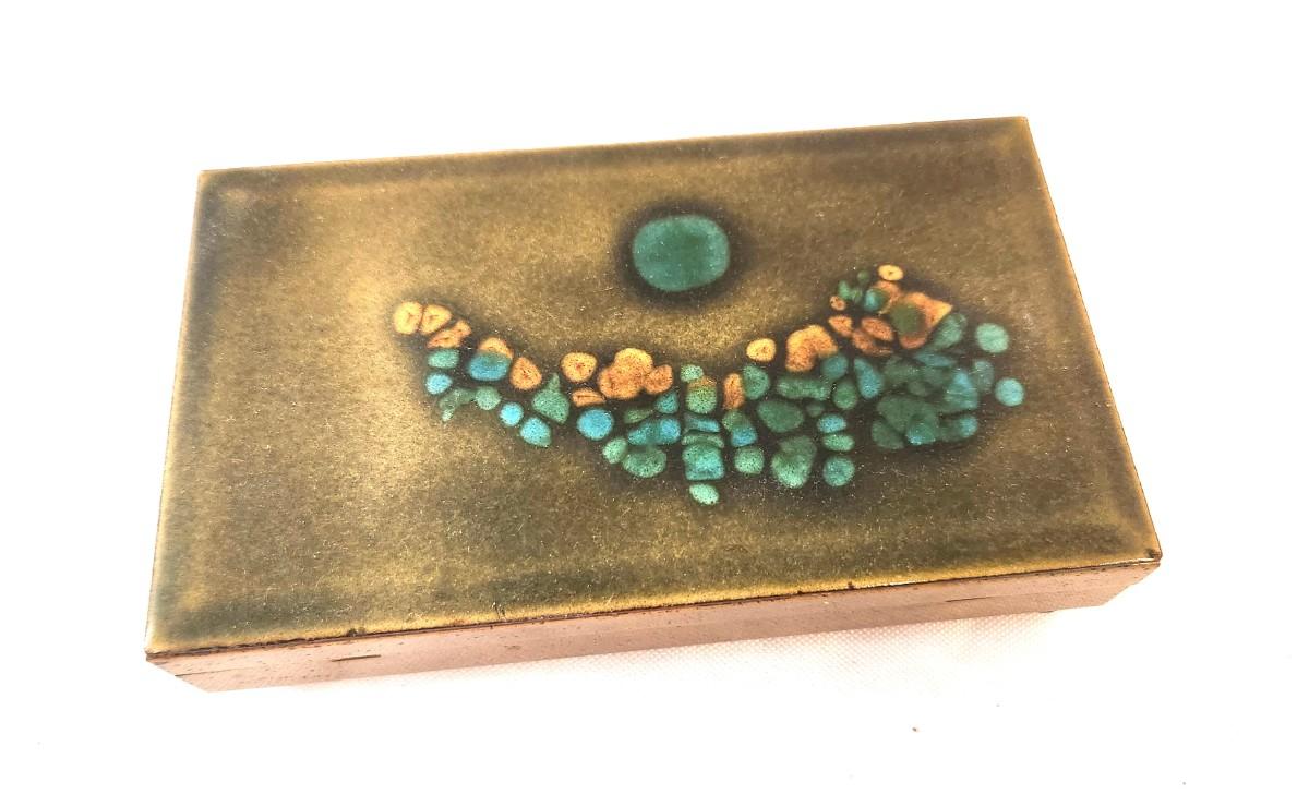 1960's BOVANO of CHESIRE trinket box - enamel on copper.5.25" X 3' - hinged. Good vintage condition - Mid Century Modern.