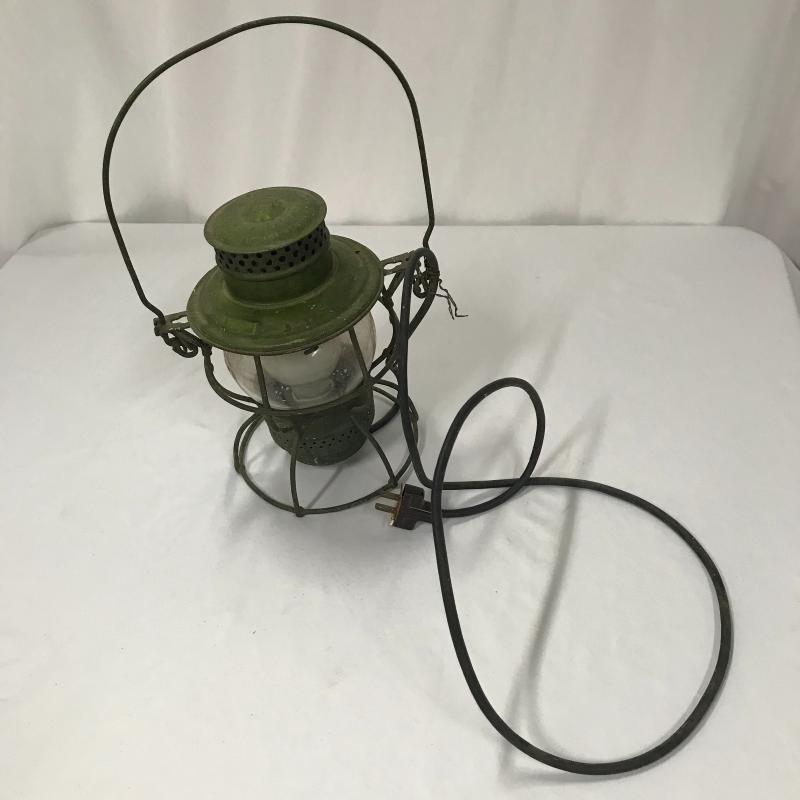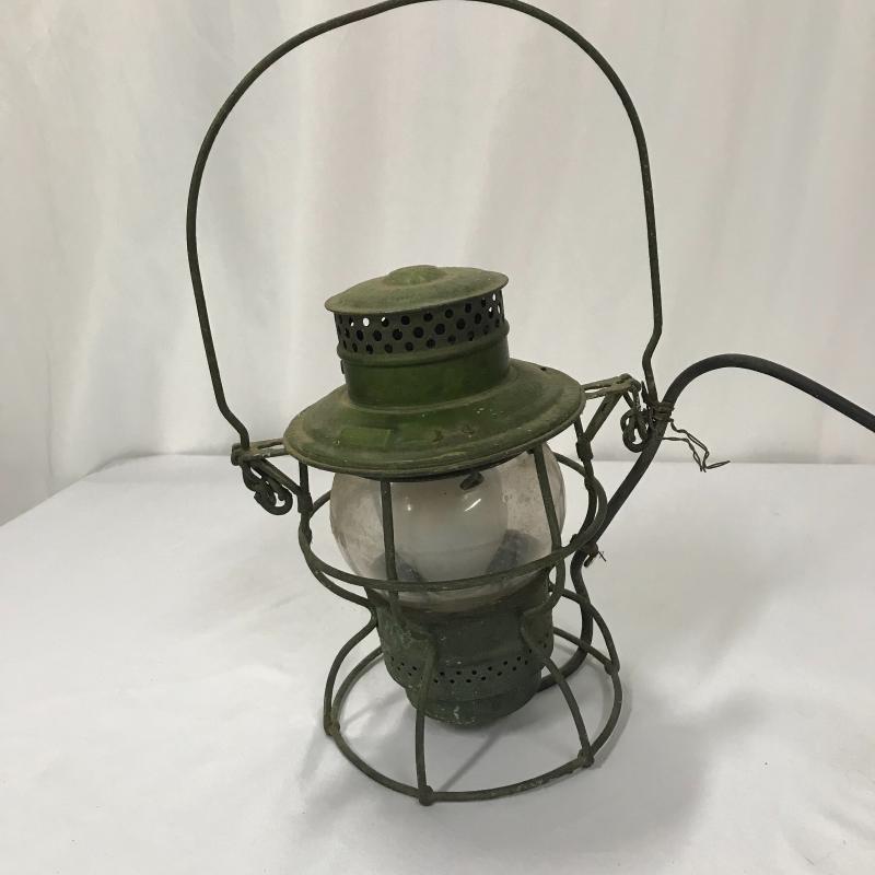 Vintage lantern has been converted to a lamp. When plugged in did not work but all wiring looks fine. Lantern is in good condition with original glass globe. Stands 14” tall. Lot is available for shipping or local pick up in Asheville, NC.