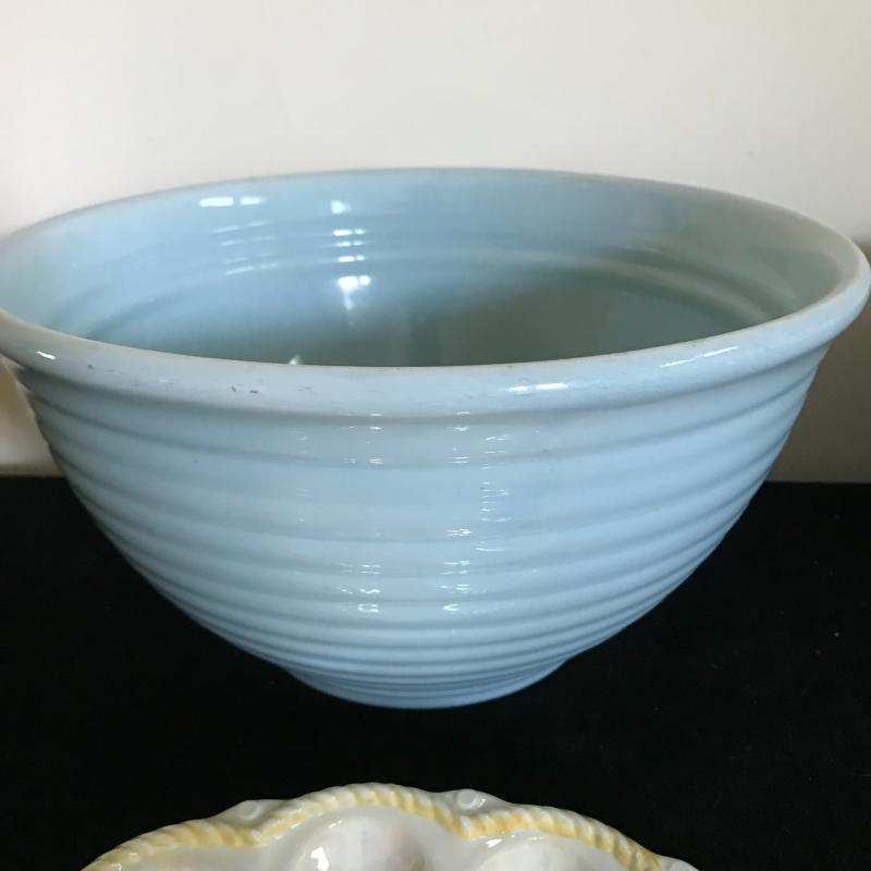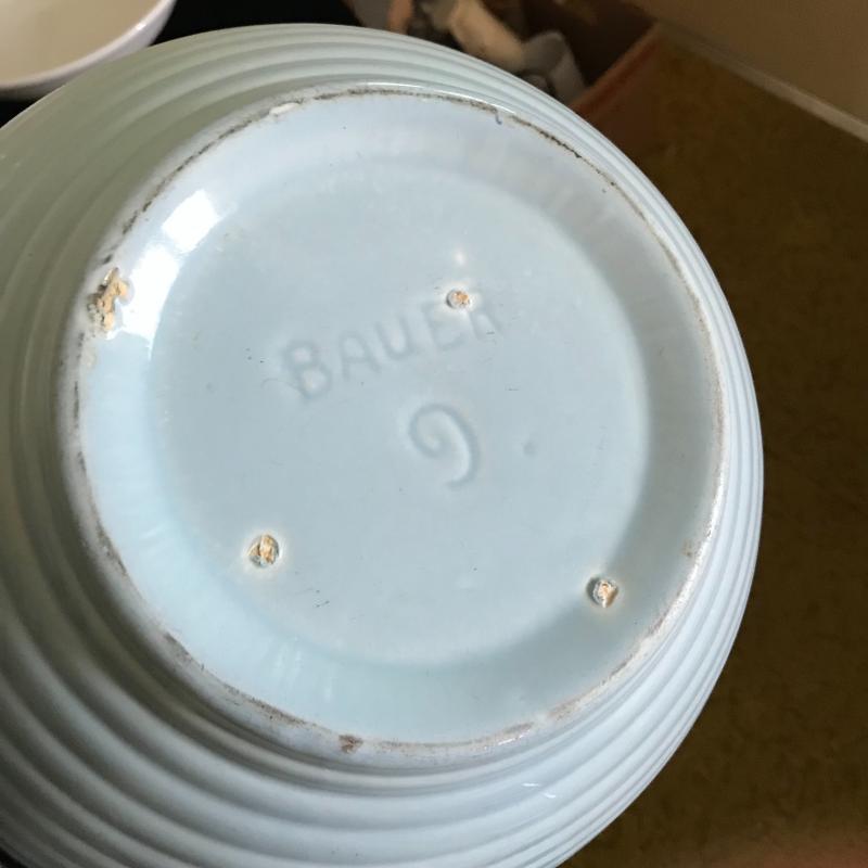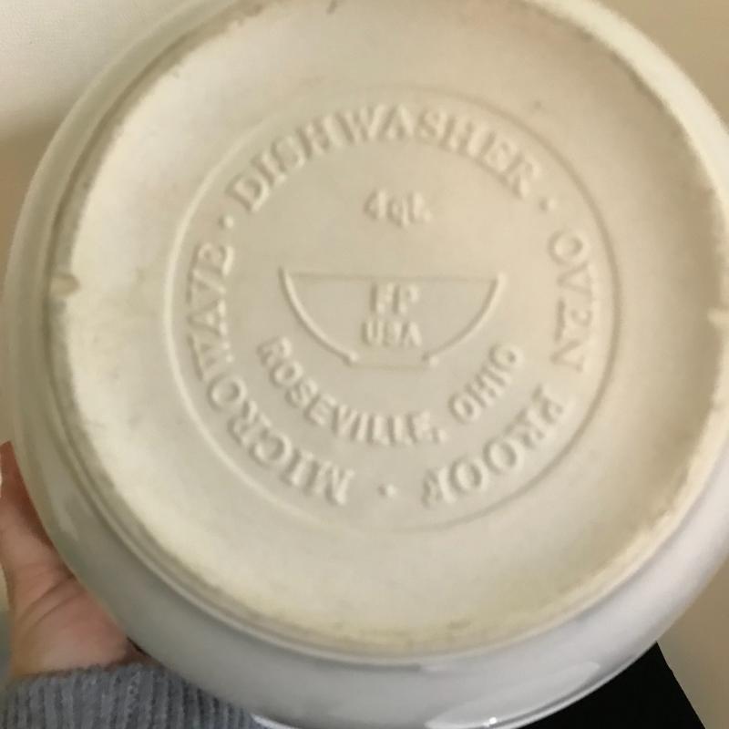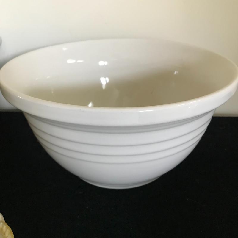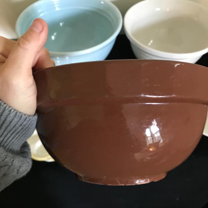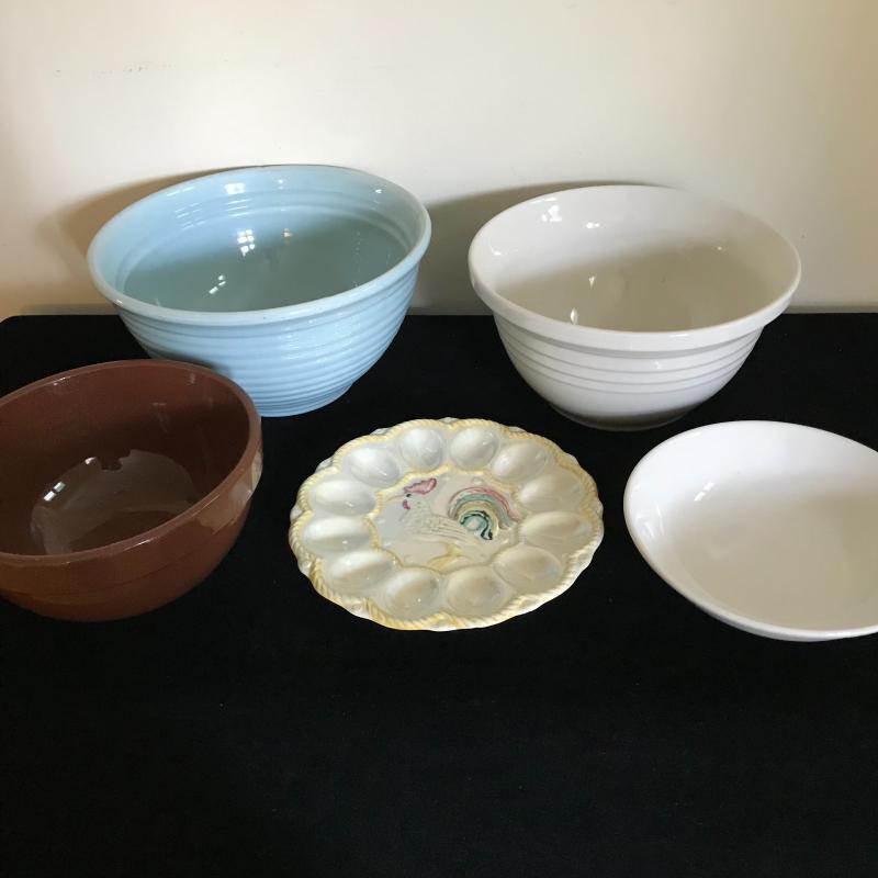Lot includes five pieces of stoneware. Largest bowl is chipped. See pics for markings. No shipping available. Local pickup only in Hendersonville, NC.