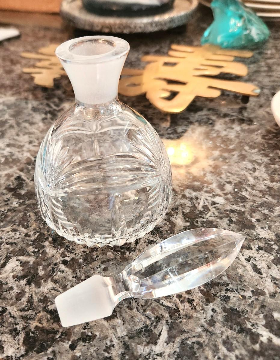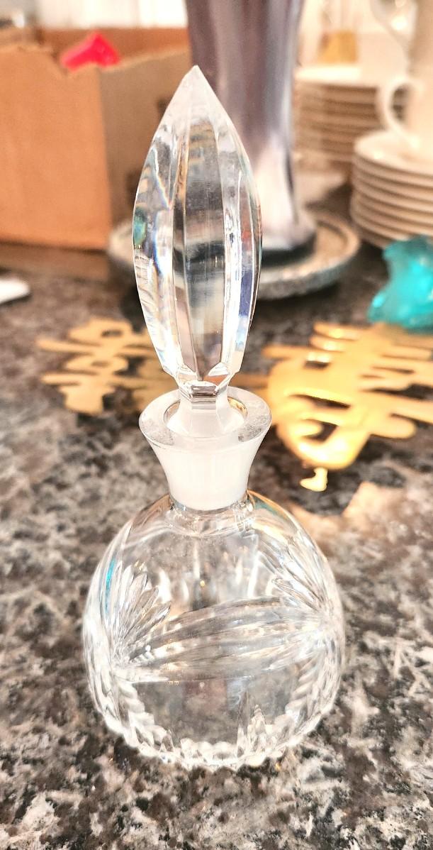 Pretty Waterford Marquis (marked) scent bottle with ground glass stopper. Very pretty - good condition - 6" tall.